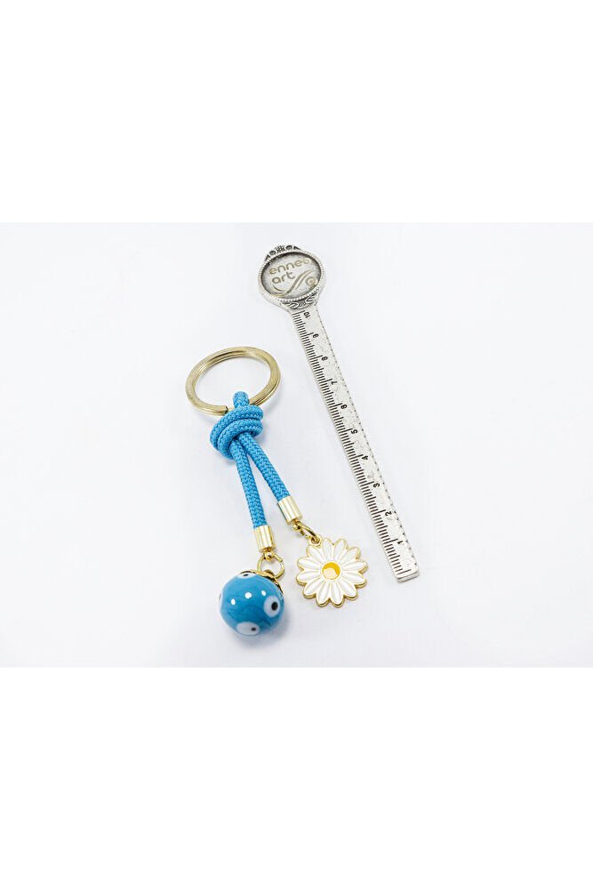 ÜRÜN TEK ANAHTARLIK OLARAK GÖNDERİLMEKTEDİR.; DİĞER RENKLERİ PANELDE MEVCUTTUR.; Nazar boncukları el yapımı camdır.; Papatya tek taraflıdır ve metaldir.;