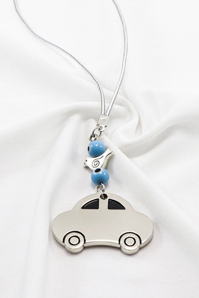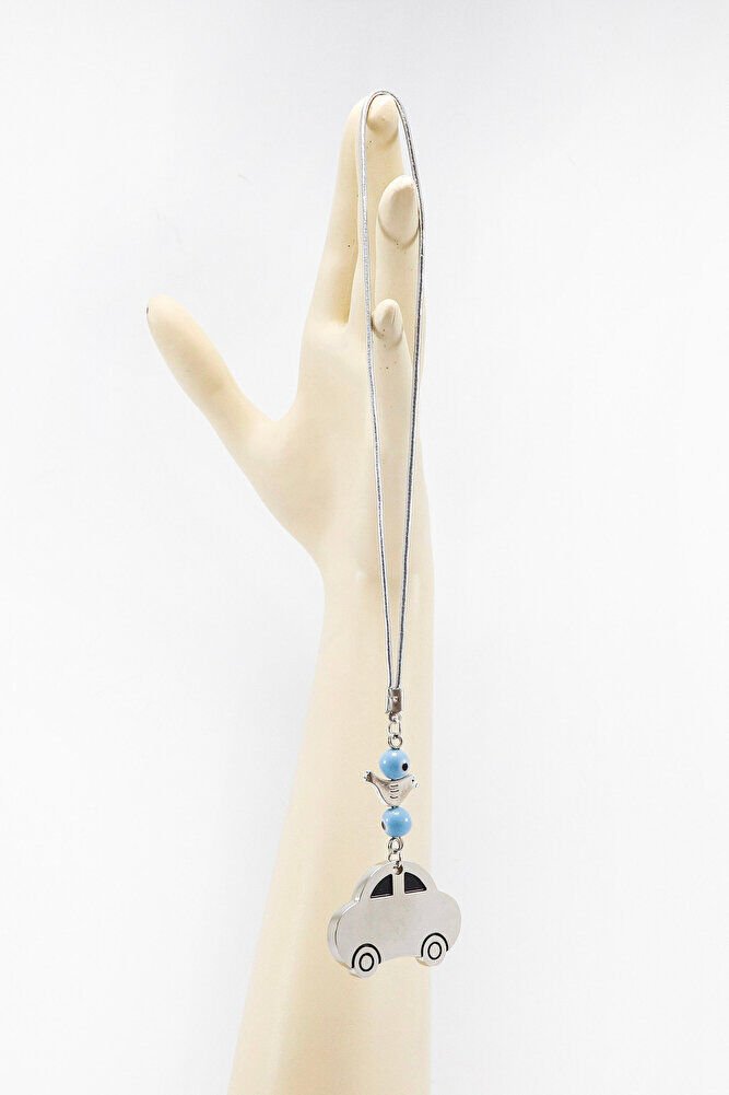 Mavi El Yapımı Cam Nazar Boncuğu Metal Kuş Gümüş Araba Figürlü Dikiz Ayna Süsü, Yeni Araba Hediyesi