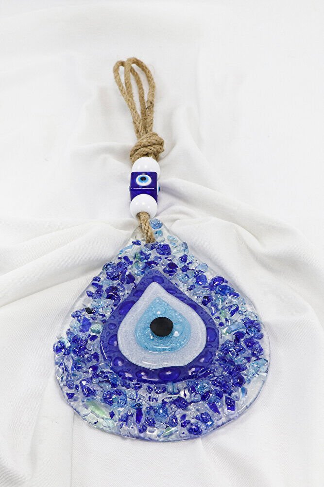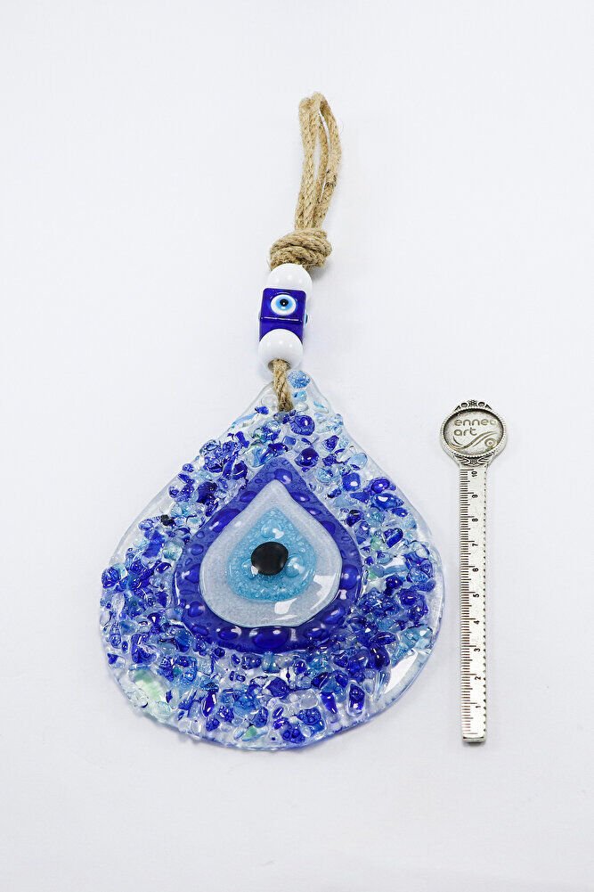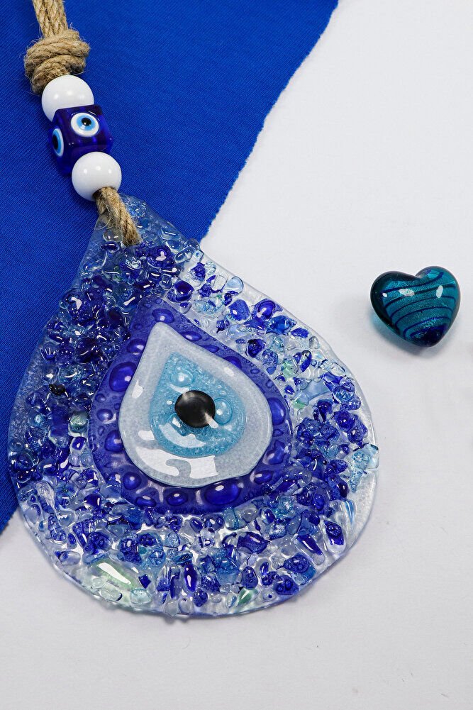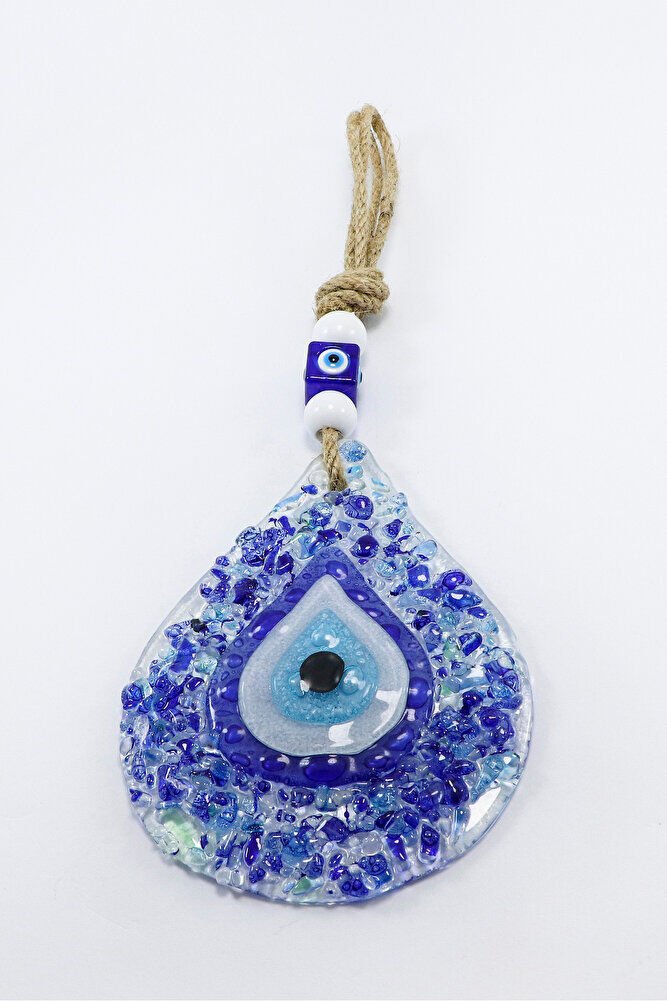 Mavi Kırıntılı Su Damlası Nazar Boncuğu El Yapımı Cam Duvar Dekoru Hediyelik Eşya