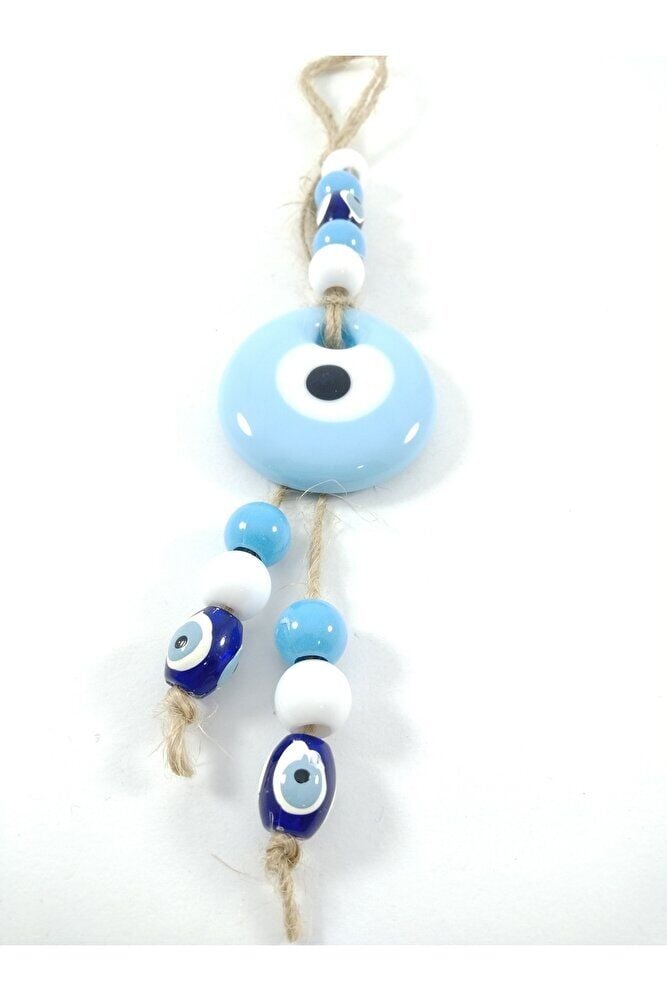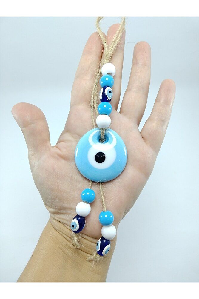 Ürün el yapımıdır. ; Büyük beyaz boncuklar 5-5,5 cm boyutundadır. ; El yapımı olduğu için ufak farklılık ve düzensizlikler olasıdır. ; Bu el yapımı cam nazar boncukları ile kendinizi ve sevdiklerinizi negatif enerjiden koruyun. ; Türk kültüründe geleneksel olarak"nazar boncuğu" olarak bilinen bu güçlü sembolün kötülükleri savuşturduğuna ve iyi şans getirdiğine inanılır. ; Her cam boncuk yetenekli zanaatkarlar tarafından titizlikle işlenir ve bu her parçayı benzersiz kılar. ; Nazar boncuğunu, müşterilerimize duvar süsü, anahtarlık, araba aksesuarı, kapı süsü, magnet gibi farklı formatlarda sunuyoruz.Pozitif enerji getirmek ve nazardan korumak için evinize, arabanıza veya ofisinize asın. ; Nazar tılsımının dünyadaki çeşitli kültürlerde farklı isimleri vardır. ; Arapça'da "aynal-hasud" veya "haset gözü", Yunanca'da "mati"veya "????" olarak bilinir. ; Adı ne olursa olsun, bu koruyucu nazar boncuğunun gücüne olan inanç evrenseldir.;