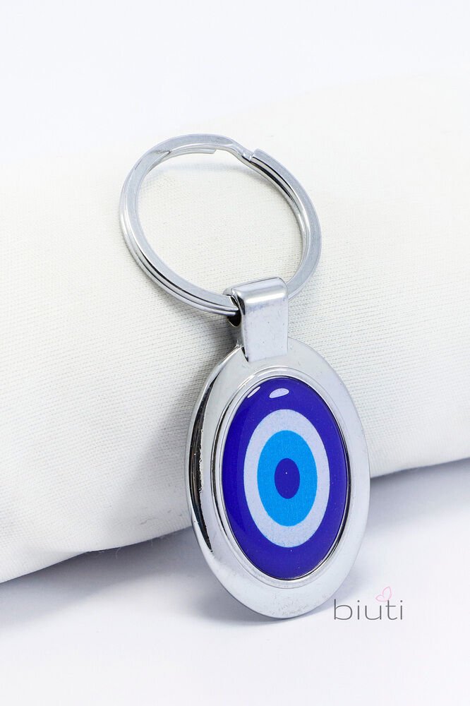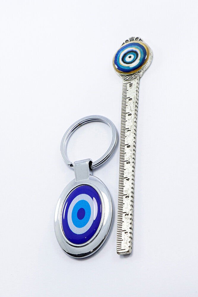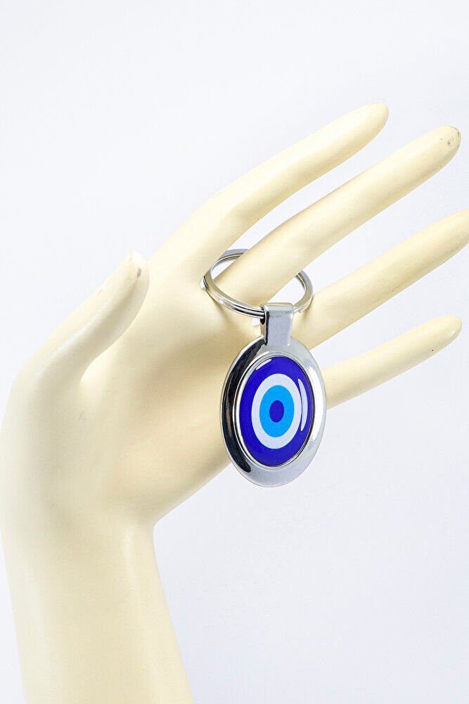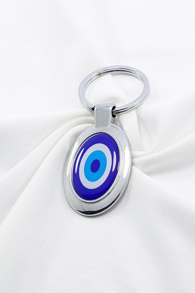 Mavi Nazar Boncuğu Tek Taraflı Metal Anahtarlık, Hediyelik Nazarlı Anahtarlık