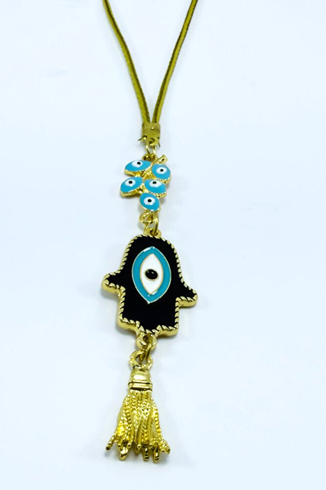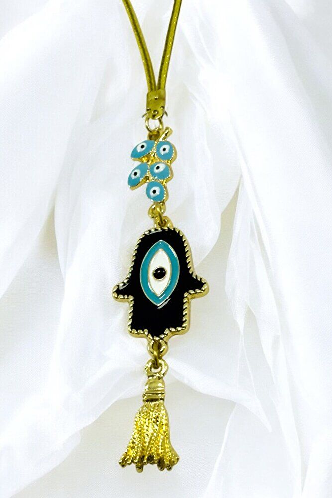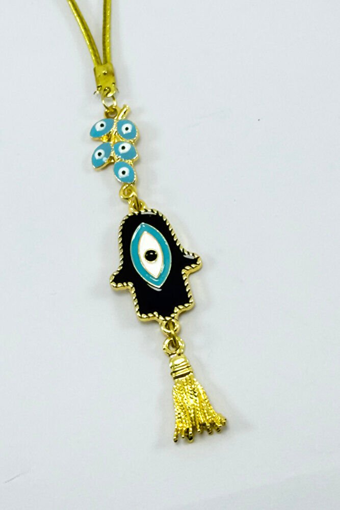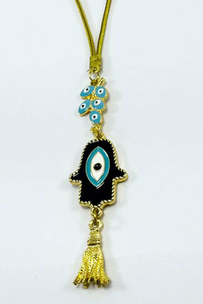 Mavi Nazarlı Salkım Hamse Araba Dikiz Ayna Süsü, Fatıma Ana Eli Yeni Araba Hediyesi