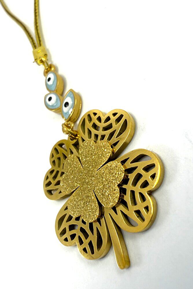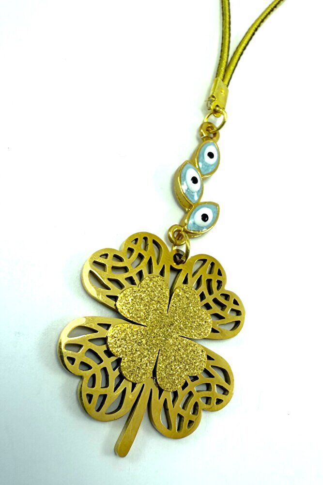 Mavi Salkım Nazar Detaylı Çelik Yonca Araba Dikiz Ayna Süsü, Lüks Yeni Araba Hediyesi