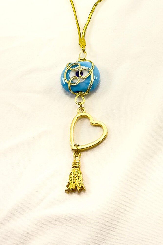 Mavi Sarma Dana Gözü Kalp Püsküllü Araba Dikiz Ayna Süsü
