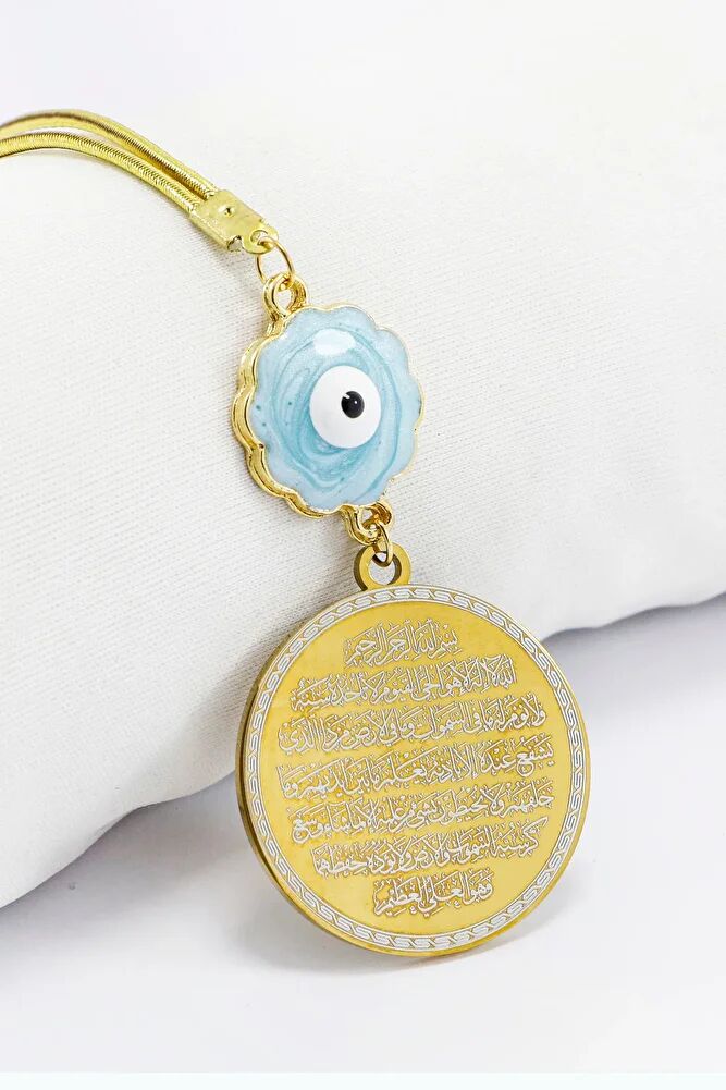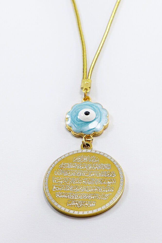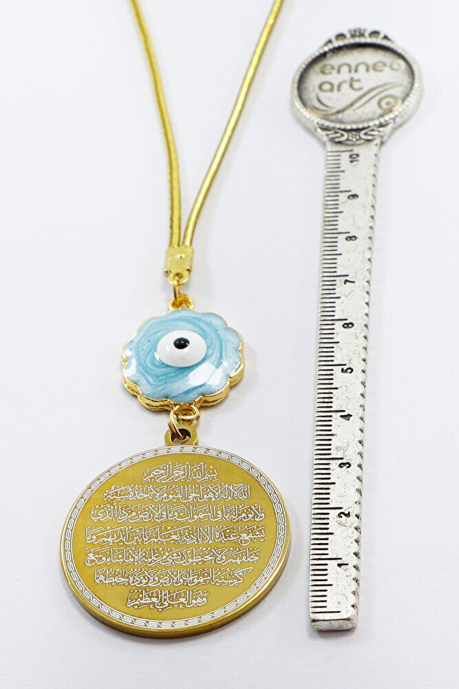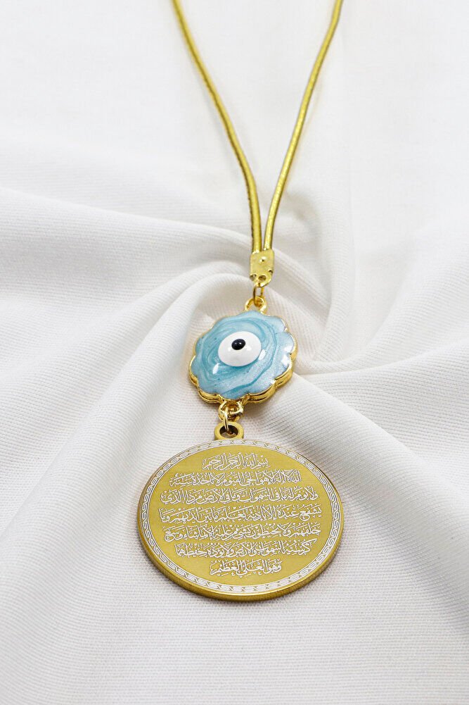 Mavi Sedefli Çiçekli Nazar Ayetel Kürsi Hilye-i Şerif Paslanmaz Çelik Araba Dikiz Ayna Süsü