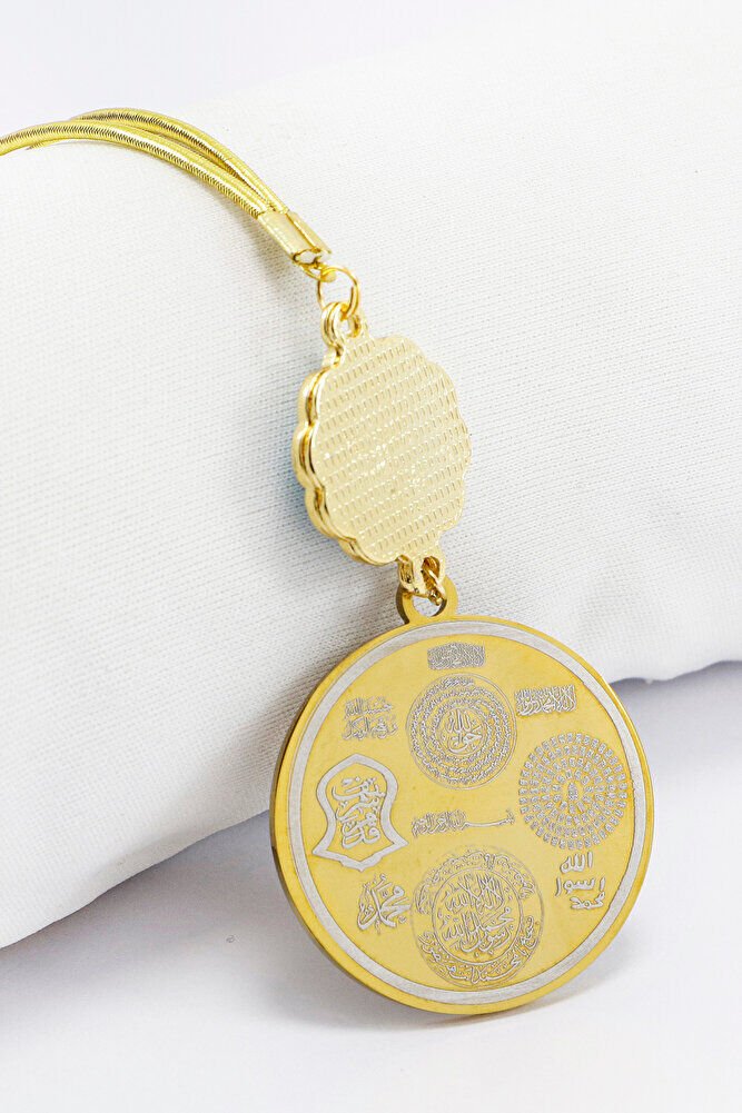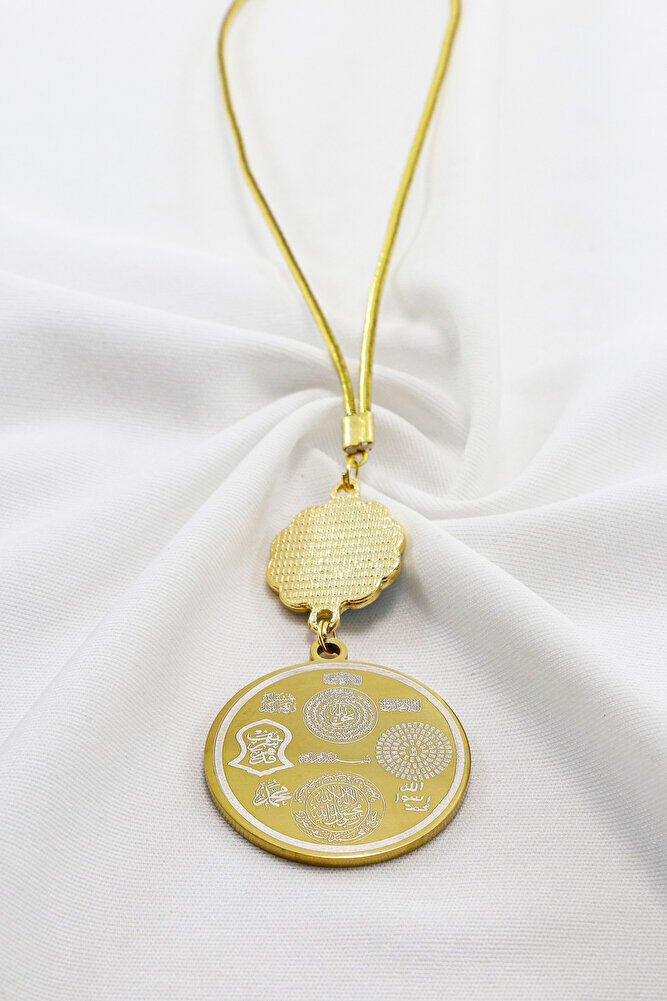 TÜM ÜRÜN FOTOGRAFLARI ENNEA ART FİRMASINA AİTTİR VE ÖZGÜN ÇALIŞMALARDIR.; İZİNSİZ KULLANIM, KOPYALAMA VEYA DAĞITIM KESİNLİKLE YASAKTIR.; GEREKLİ DURUMLARDA YASAL İŞLEM BAŞLATILACAKTIR.; Dualar lazer kazıma tekniği ile kalıcı bir şekilde kazınmaktadır.; Ürün el yapımıdır.; El yapımı olduğu için ufak farklılık ve düzensizlikler olasıdır.; ip elastik olduğu için her modele rahatlıkla takılabilmektedir.; Plaka altın renkli paslanmaz çeliktir.; Ürünün tüm parçaları paslanmaz çeliktir.; Ürün çift taraflıdır, Bir yüzünde Ayetel Kürsi diğer yüzünde Hilye-i Şerif Mührü Şerif Esmaül Hüsna Nallı Şerif Duaları bulunmaktadır.; Altın renkli çelik plaka 3,5 cm ölçülerindedir.; Ayetel Kürsi: Koruyucu ve güçlü bir dua olduğu düşünülür, nazardan ve kötülüklerden muhafaza ettiğine inanılır.; Hilye-i Şerif: Hz.; Muhammed’in fiziksel ve ahlaki özelliklerini anlatan metinlerdir, bereket ve huzur getirdiği söylenir.; Mühr-ü Şerif: Hz.; Muhammed’e ait olduğu rivayet edilen mühürdür, taşıyan kişiye manevi destek sağladığına inanılır.; Esma-ül Hüsna: Allah’ın 99 ismini ifade eder, bu isimleri zikretmenin ruhsal huzur ve duaların kabulüne vesile olabileceği söylenir.; Nalı Şerif: Hz.; Muhammed’in bineğinin nalının bir sembolü olduğu düşünülür, sahibine uğur getirdiğine inanılır.;