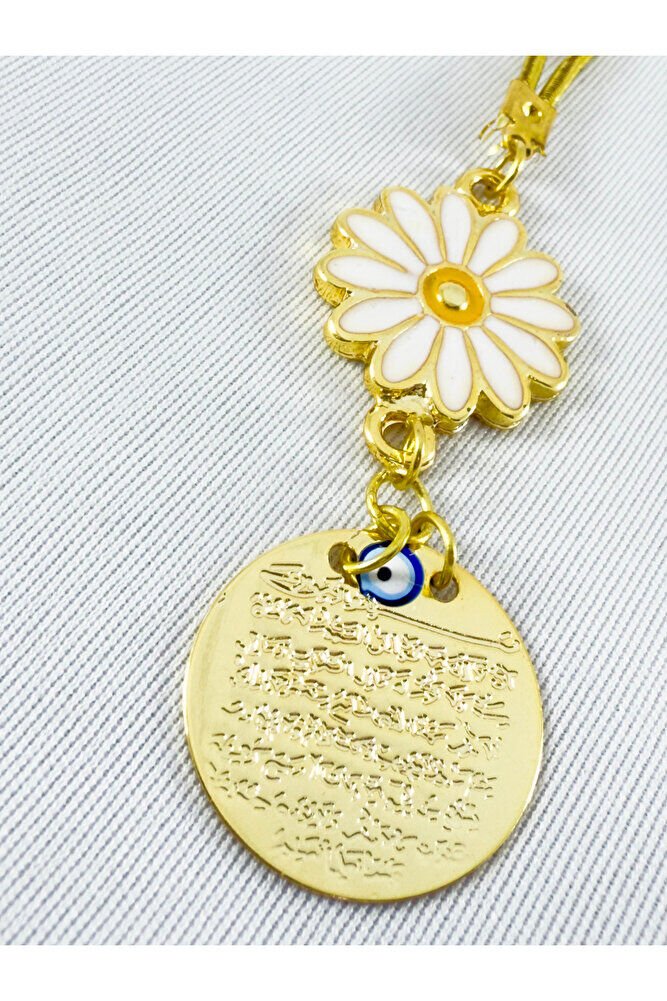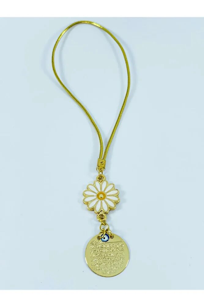 Metal Ayetel Kürsi Papatyalı Araba Dikiz Ayna Süsü El Yapımı Lüks Aksesuar
