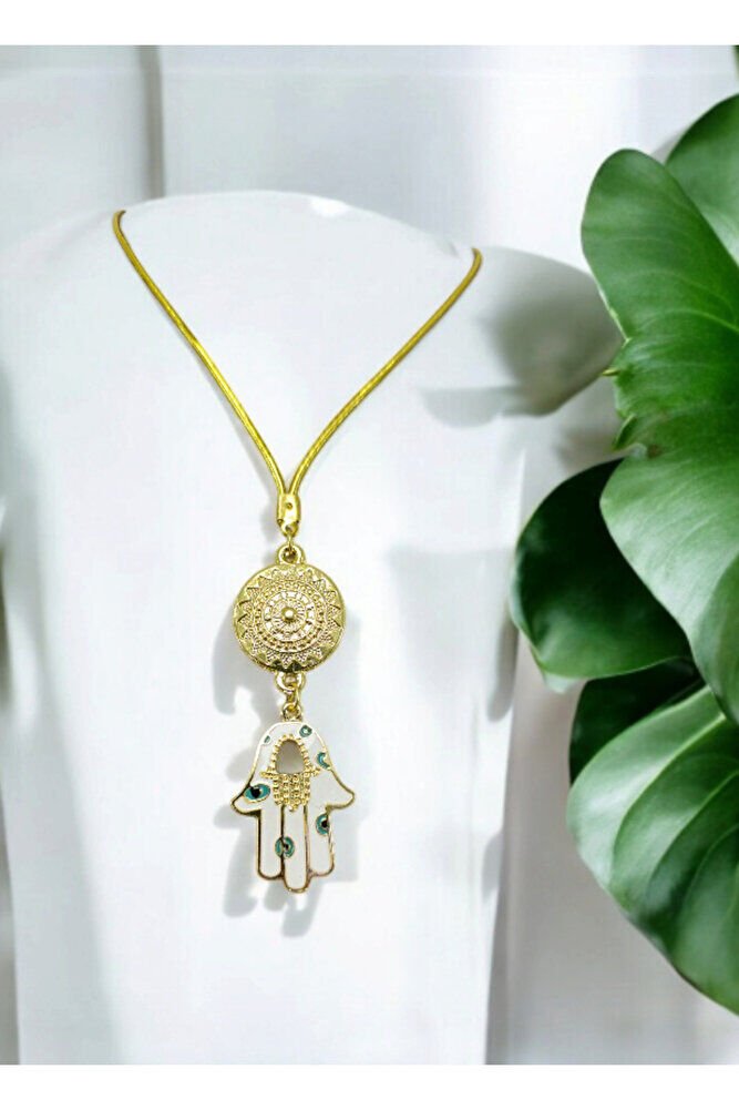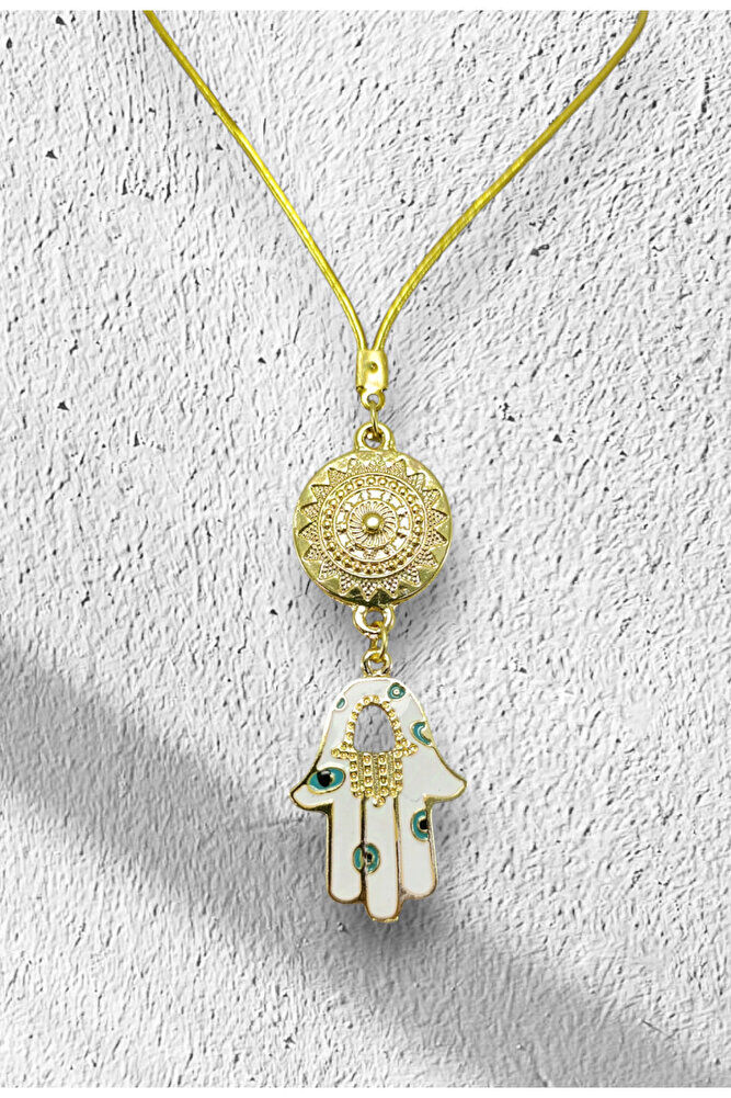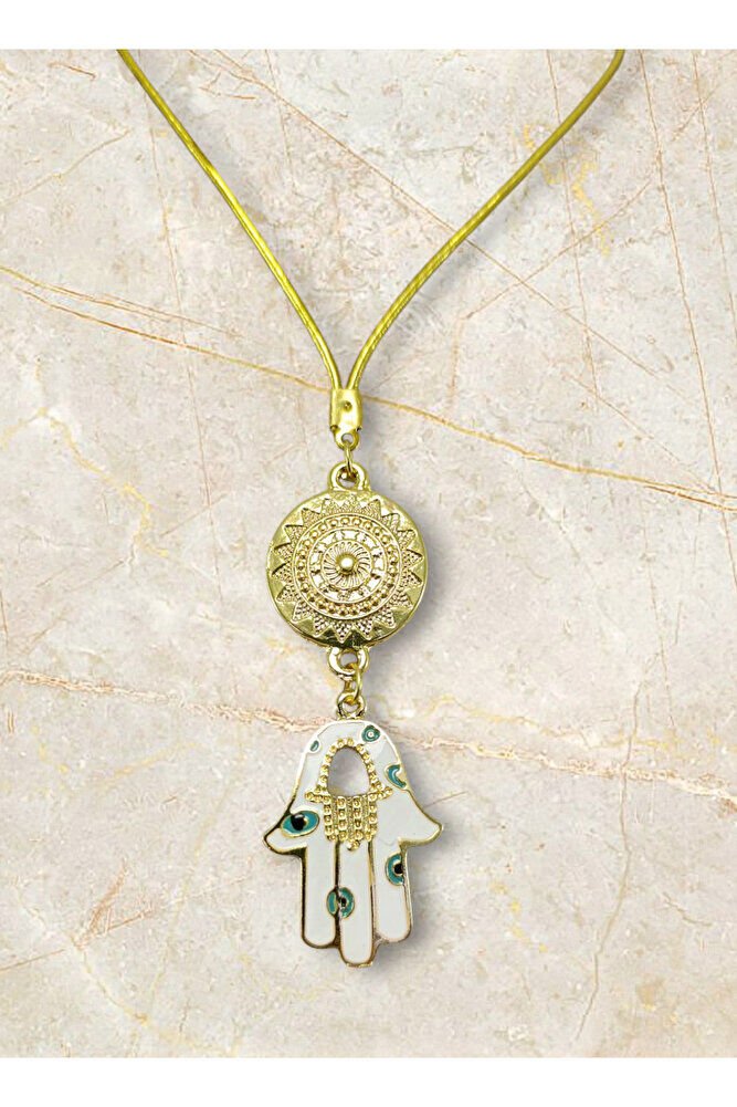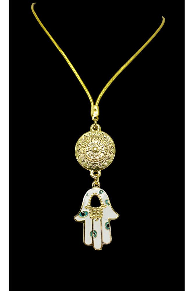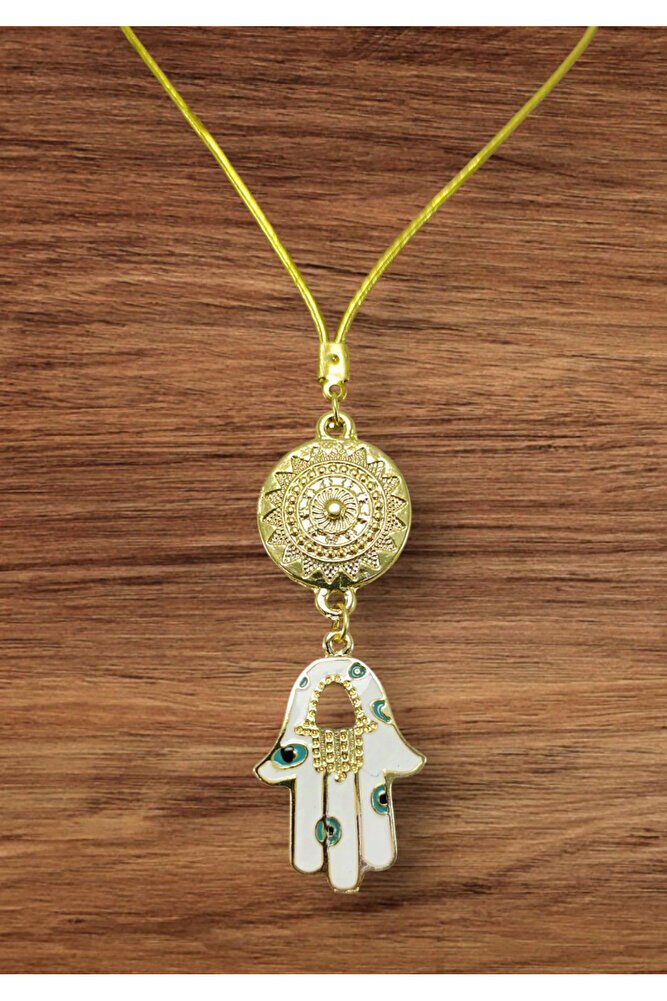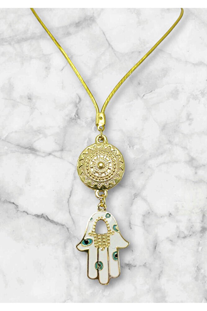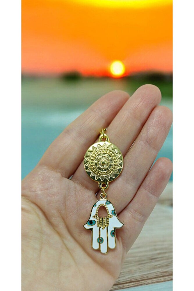 Metal Beyaz Hamse Ana Eli Dikiz Ayna Süsü, Nazar Boncuklu Yeni Araba Hediyesi