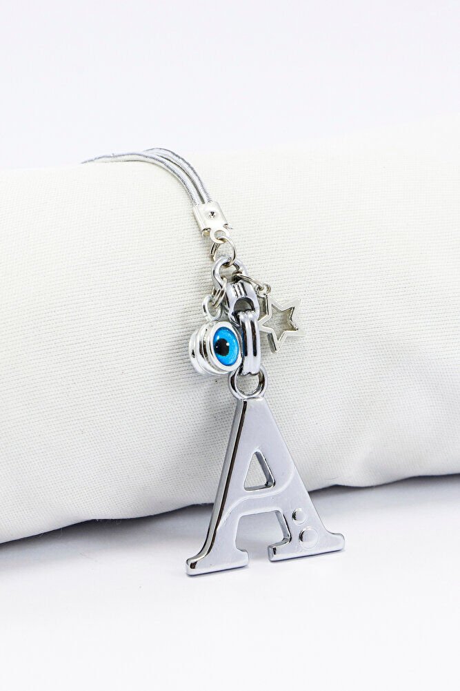Metal Nazar Boncuğu Yıldız A Harfli Dikiz Ayna Süsü, Elastik İpli Hediyelik Yeni Araba Hediyesi