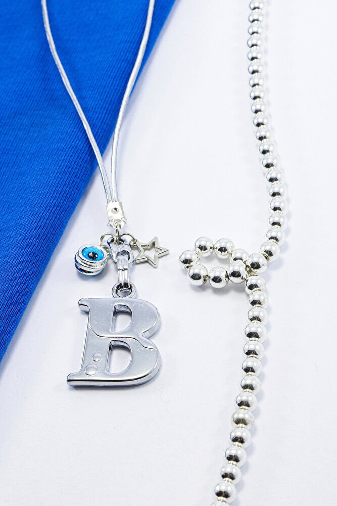Metal Nazar Boncuğu Yıldız B Harfli Dikiz Ayna Süsü, Elastik İpli Hediyelik Yeni Araba Hediyesi