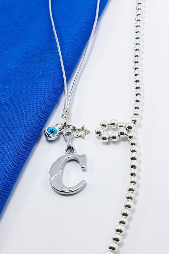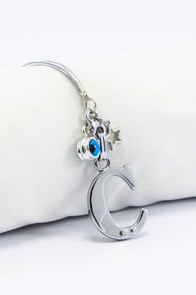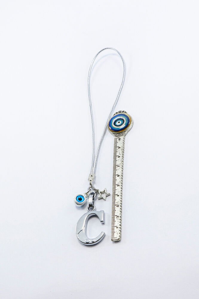 Metal Nazar Boncuğu Yıldız C Harfli Dikiz Ayna Süsü, Elastik İpli Hediyelik Yeni Araba Hediyesi