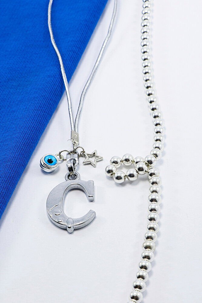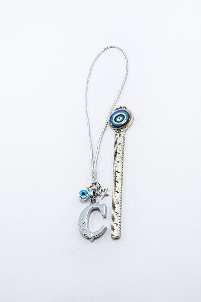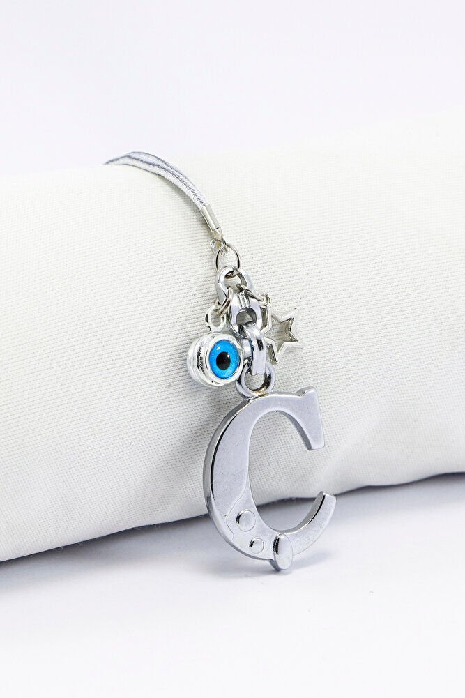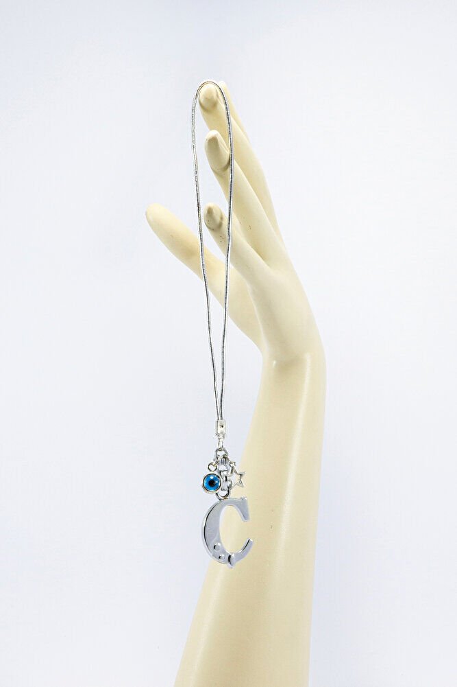 Metal Nazar Boncuğu Yıldız Ç Harfli Dikiz Ayna Süsü, Elastik İpli Hediyelik Yeni Araba Hediyesi EN07091