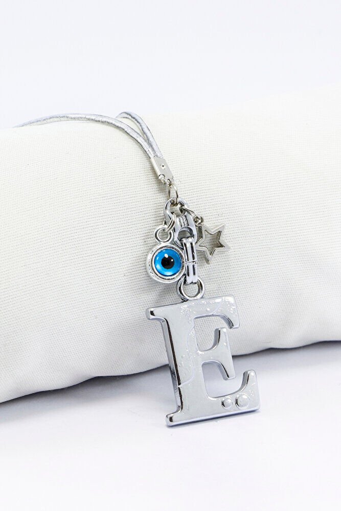 Metal Nazar Boncuğu Yıldız E Harfli Dikiz Ayna Süsü, Elastik İpli Hediyelik Yeni Araba Hediyesi