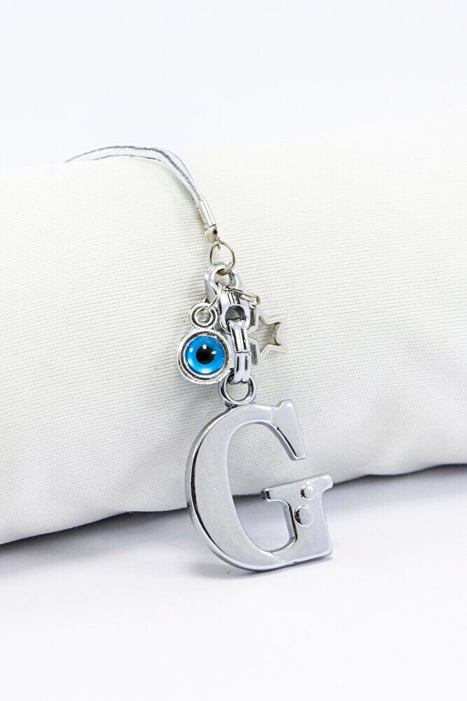 Metal Nazar Boncuğu Yıldız G Harfli Dikiz Ayna Süsü, Elastik İpli Hediyelik Yeni Araba Hediyesi