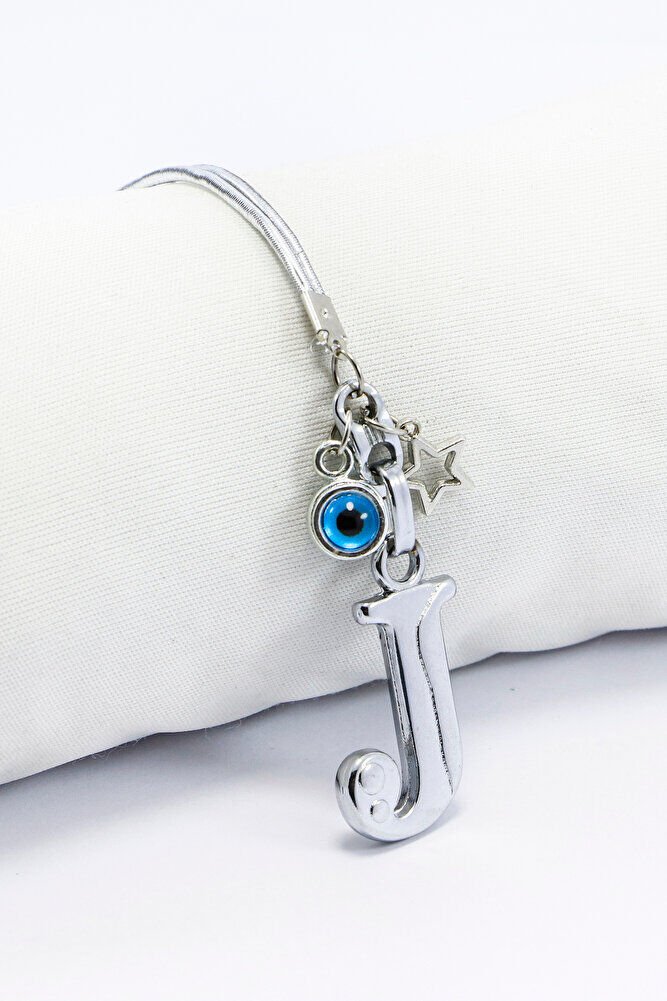 Metal Nazar Boncuğu Yıldız J Harfli Dikiz Ayna Süsü, Elastik İpli Hediyelik Yeni Araba Hediyesi
