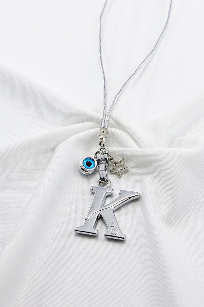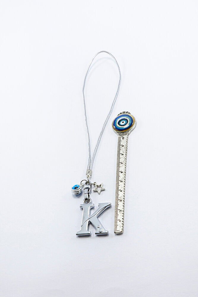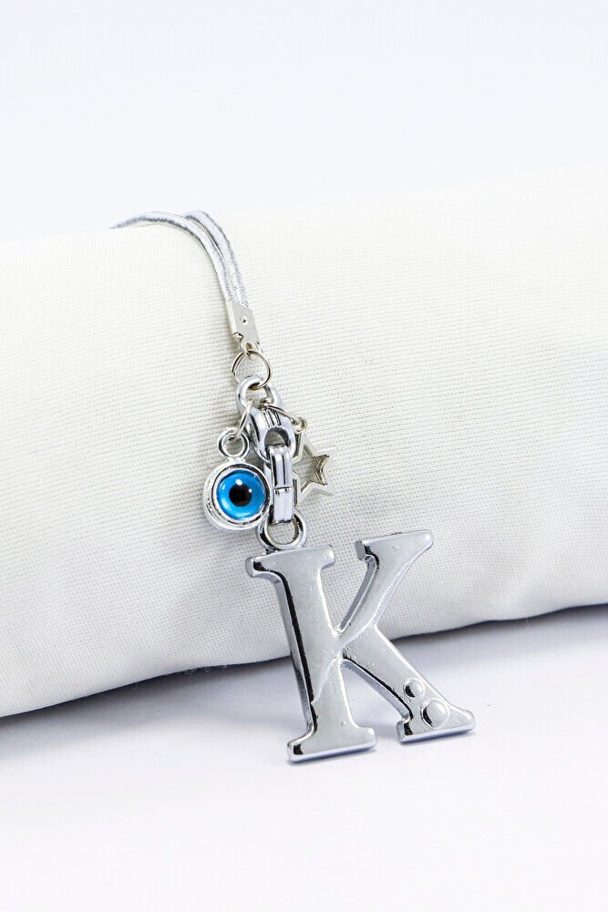 Metal Nazar Boncuğu Yıldız K Harfli Dikiz Ayna Süsü, Elastik İpli Hediyelik Yeni Araba Hediyesi