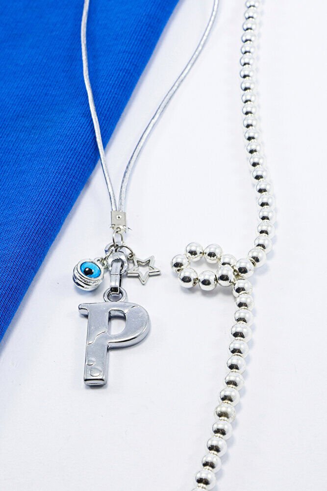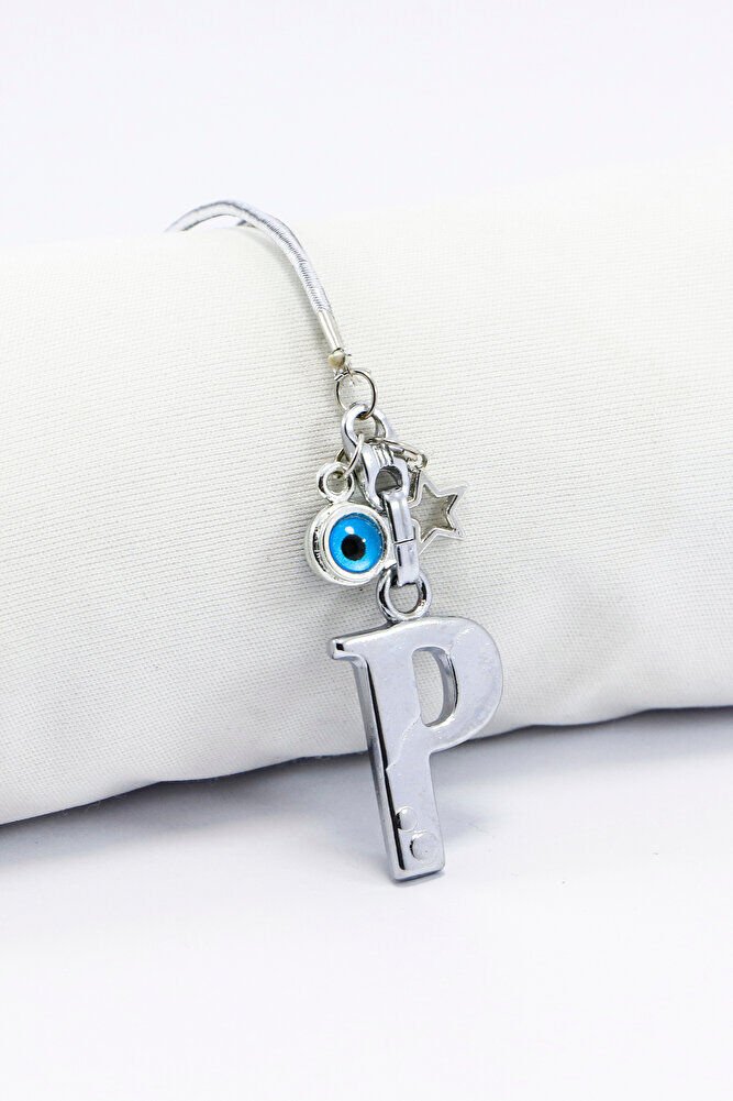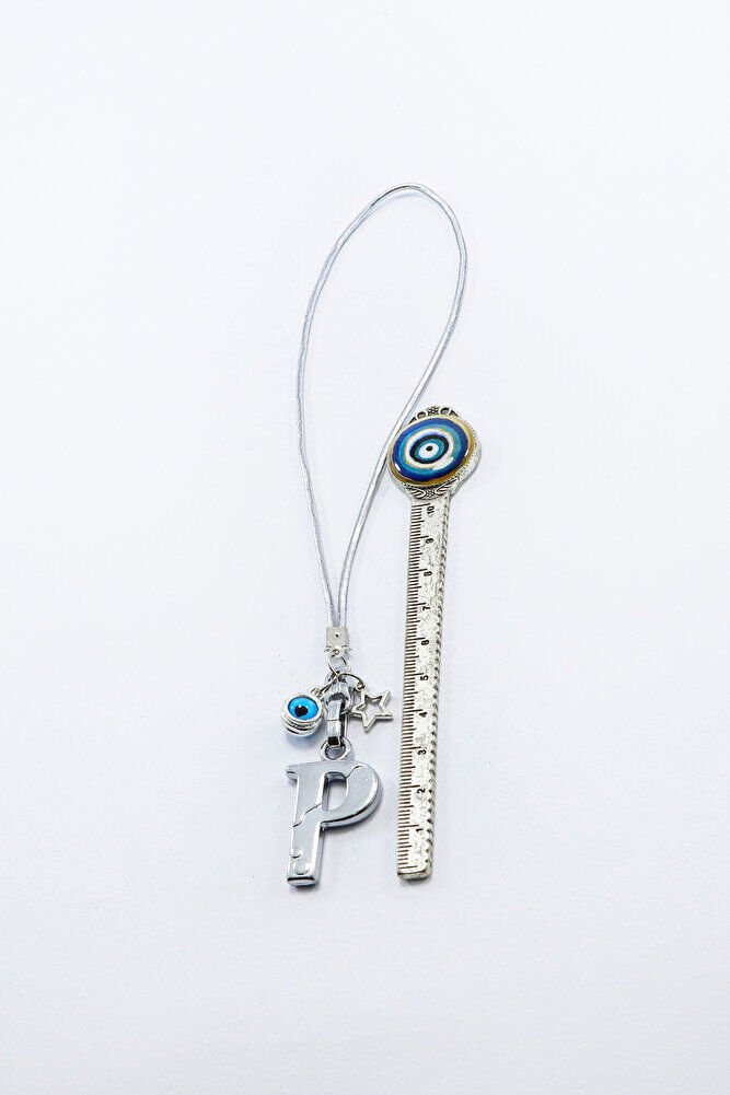 Metal Nazar Boncuğu Yıldız P Harfli Dikiz Ayna Süsü, Elastik İpli Hediyelik Yeni Araba Hediyesi