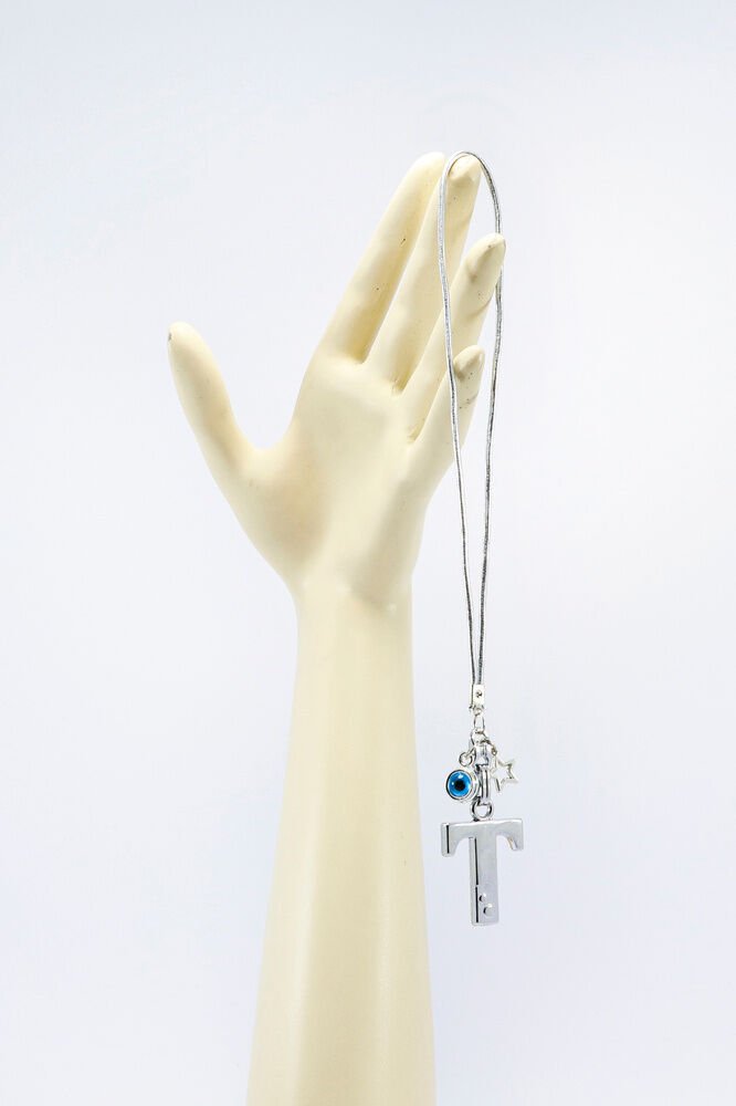 Metal Nazar Boncuğu Yıldız T Harfli Dikiz Ayna Süsü, Elastik İpli Hediyelik Yeni Araba Hediyesi