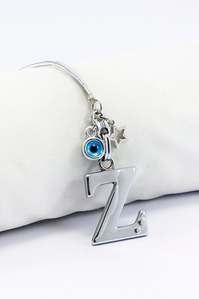 Metal Nazar Boncuğu Yıldız Z Harfli Dikiz Ayna Süsü, Elastik İpli Hediyelik Yeni Araba Hediyesi
