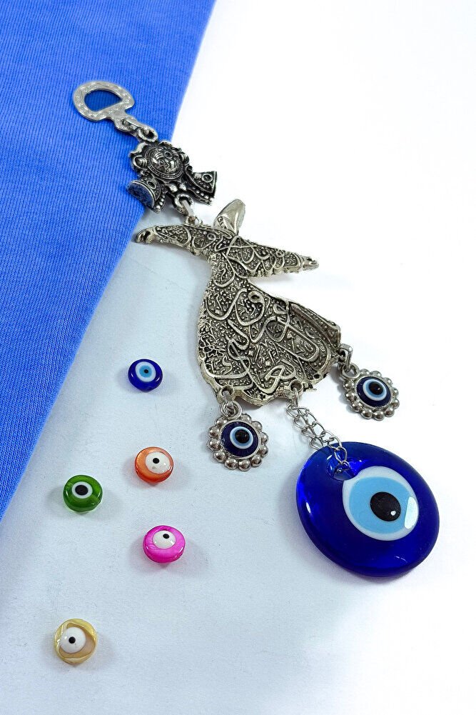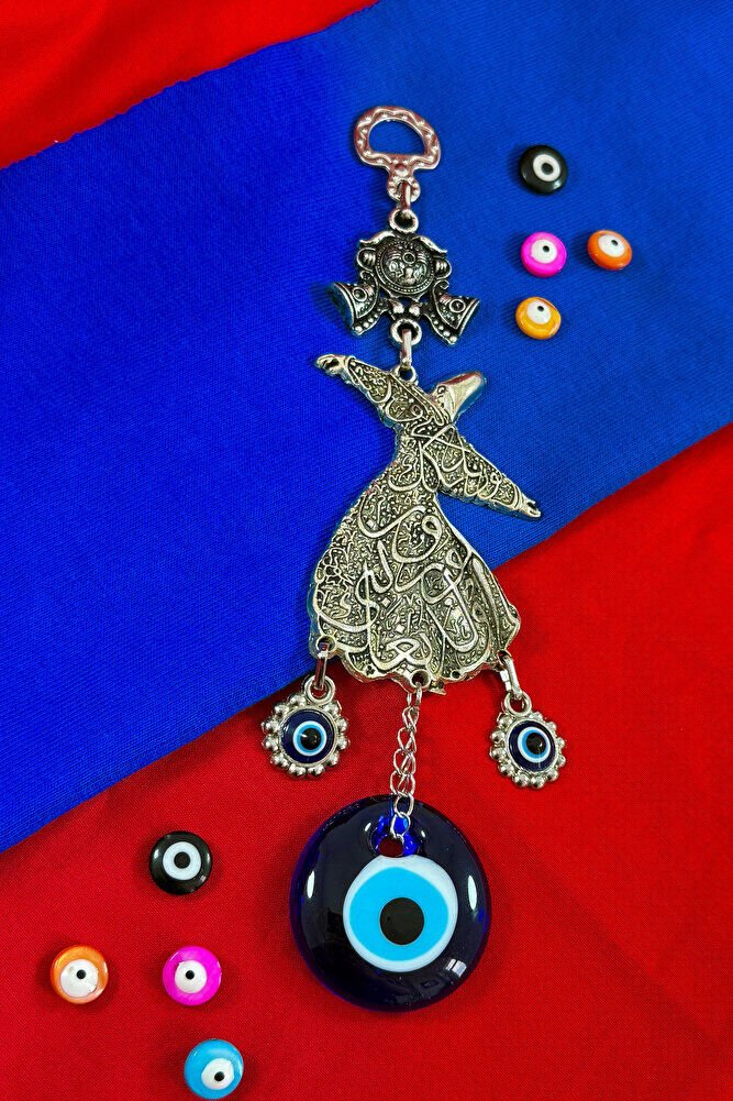 Metal Nikel Kaplama El Yapımı Cam Nazar Boncuklu Semazen Boncuklu Duvar Süsü