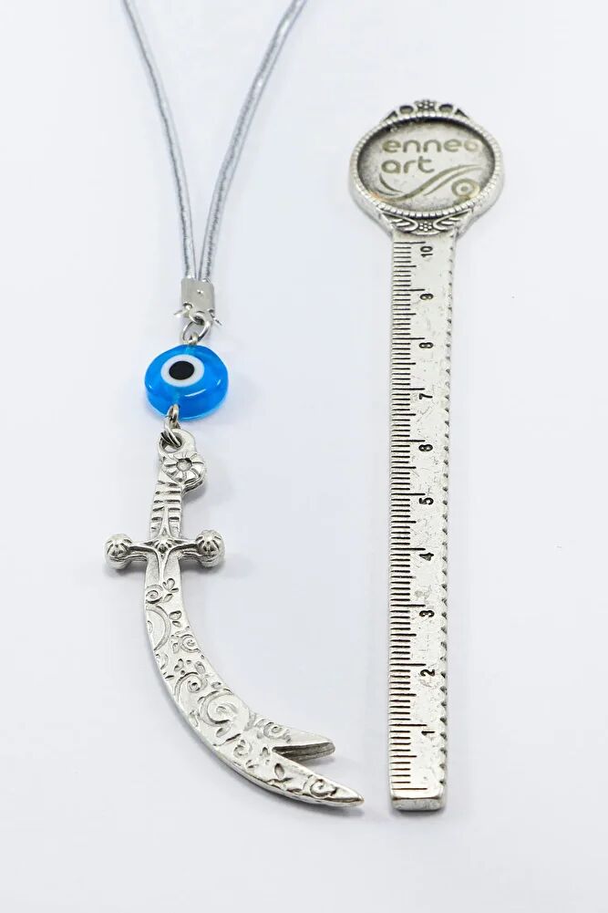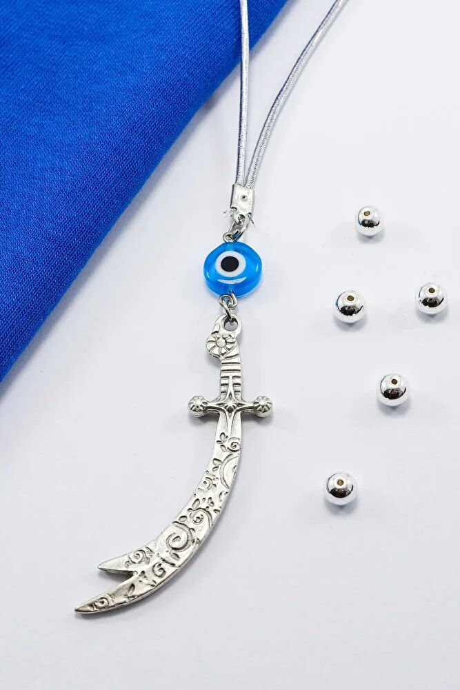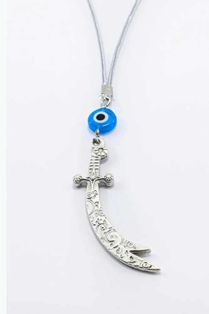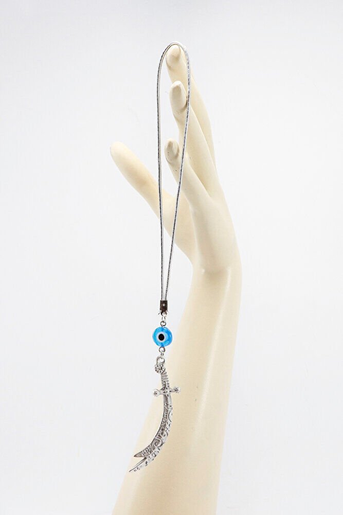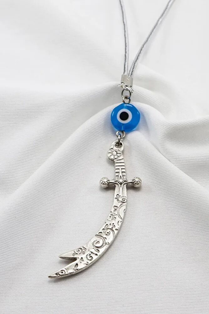 Metal Zülfikar Kılıç Araba Dikiz Ayna Süsü, El Yapımı Cam Turkuaz Nazar Boncuğu Yeni Araba Hediyesi