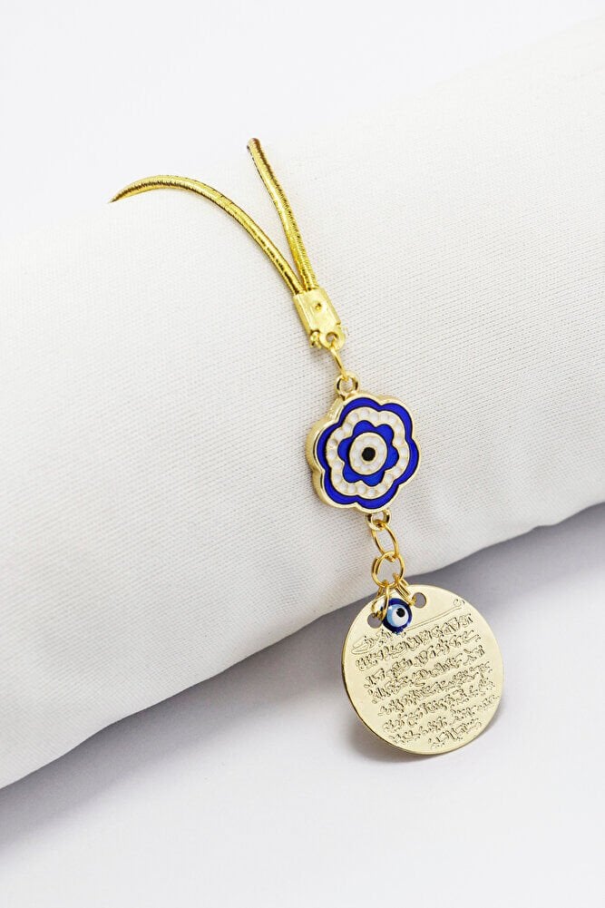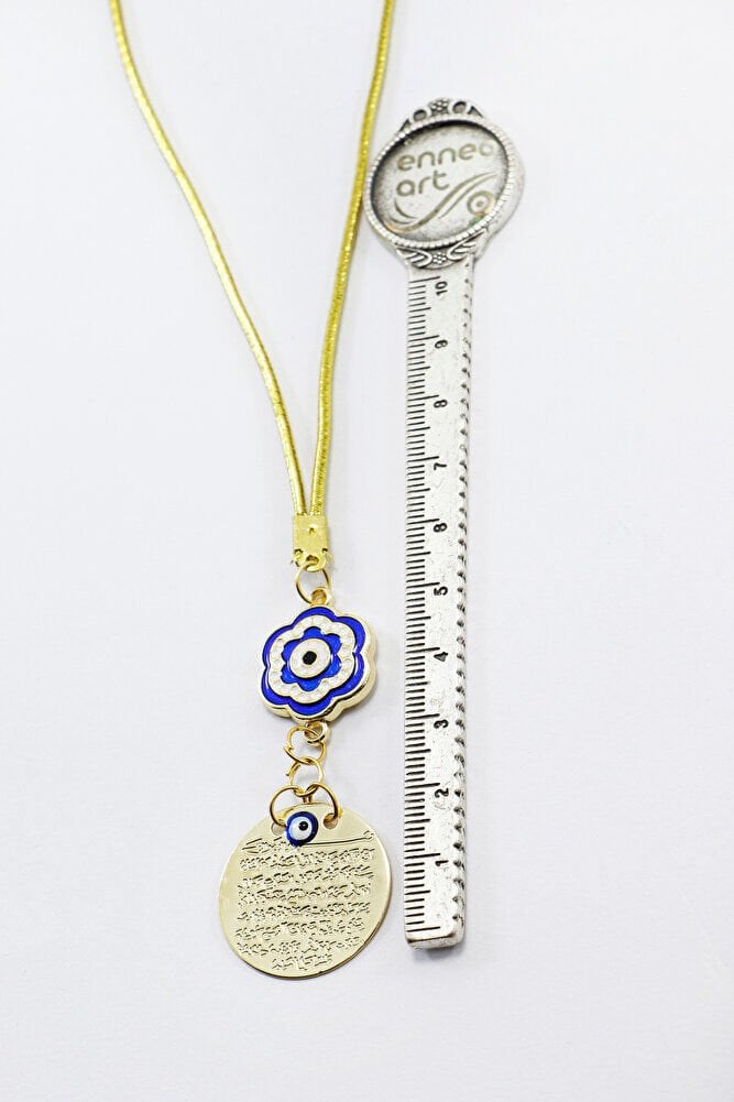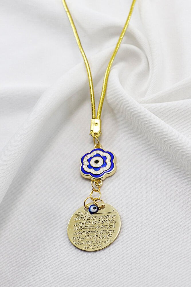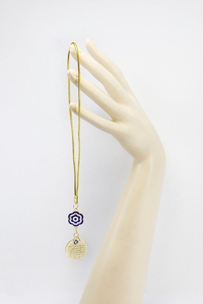 Mineli Çiçekli Metal Ayetel Kürsi Dualı Dikiz Ayna Süsü, Yeni Araba Hediyesi