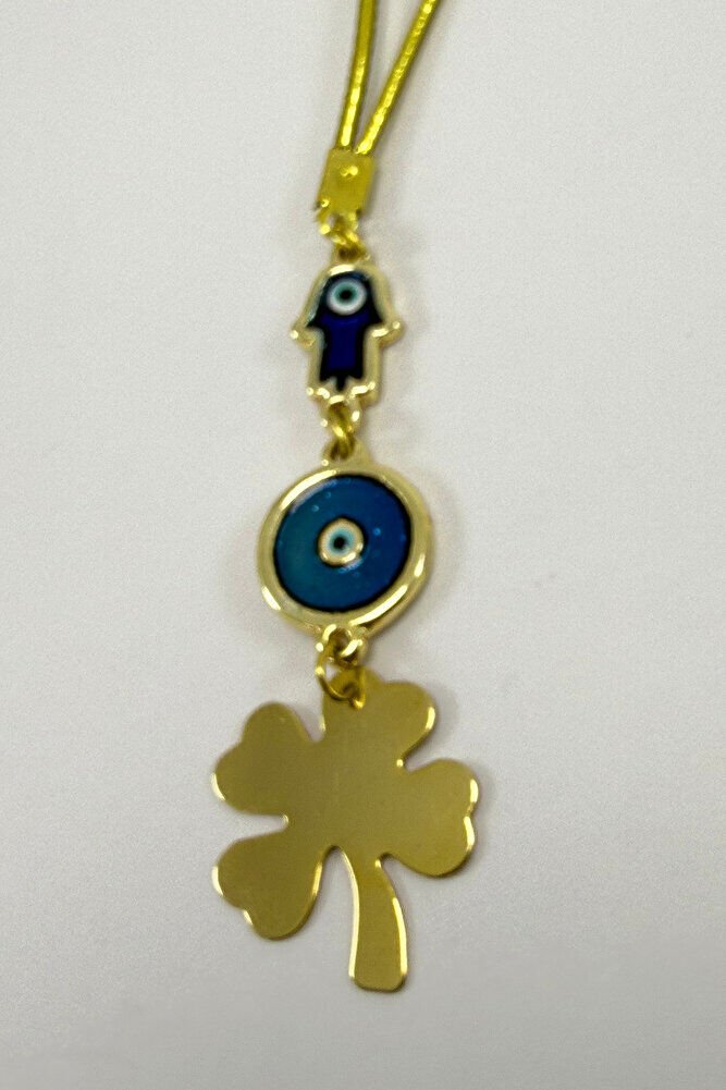 Ürün el yapımıdır.; El Yapımı olduğu için ufak farklılık ve değişiklikler olasıdır.; İpi lastiklidir.; Lastikli olduğu için her model araca rahatlıkla takılabilmektedir.; Mineli nazar boncuğu ve hamse tek taraflıdır.; Dört yapraklı yonca metaldir ve çift taraflıdır.;