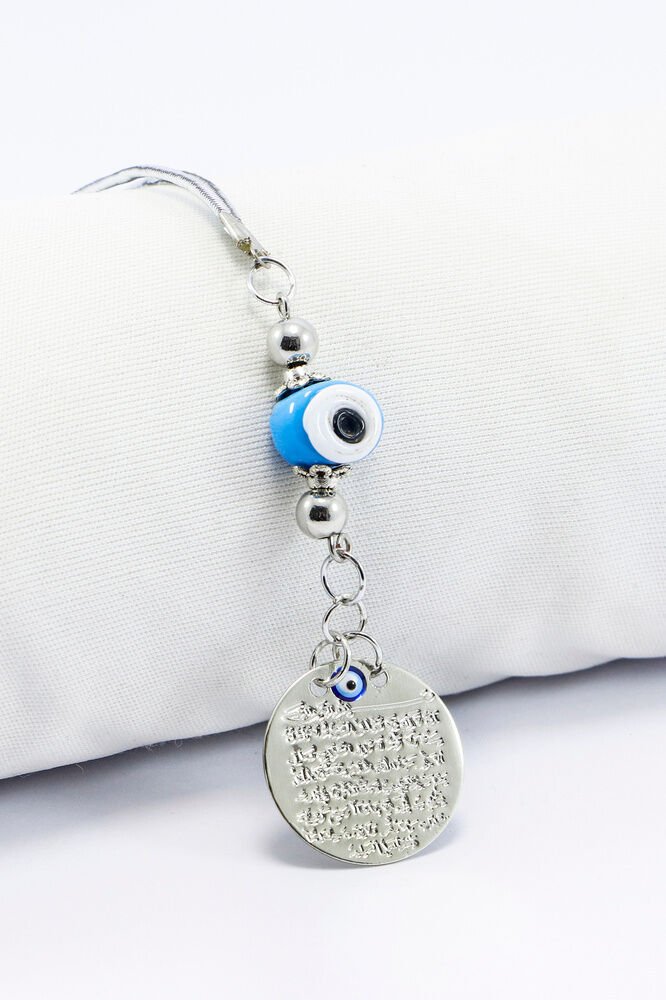 Minik Mavi Cam Danagözü Nazar Boncuğu Küçük Metal Ayetel Kürsi Araba Dikiz Ayna Süsü