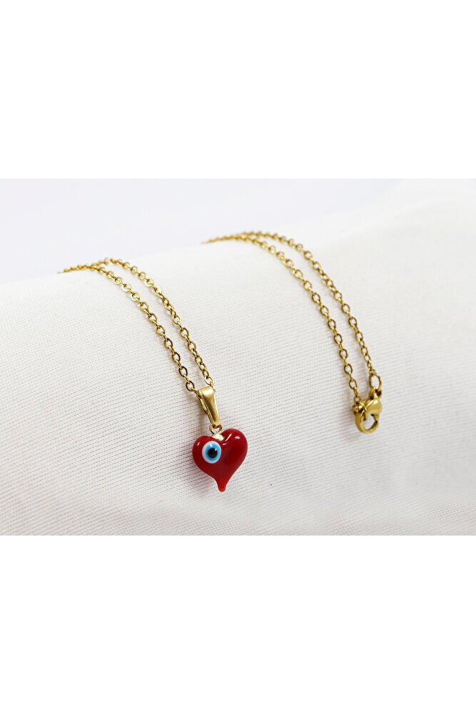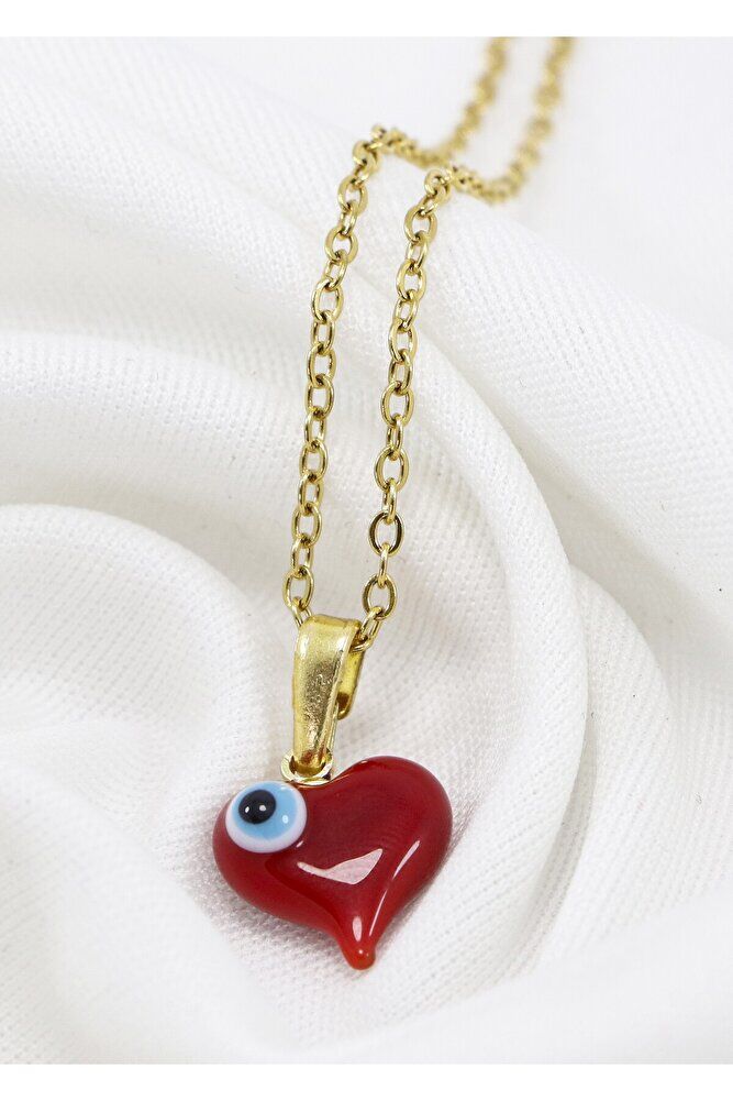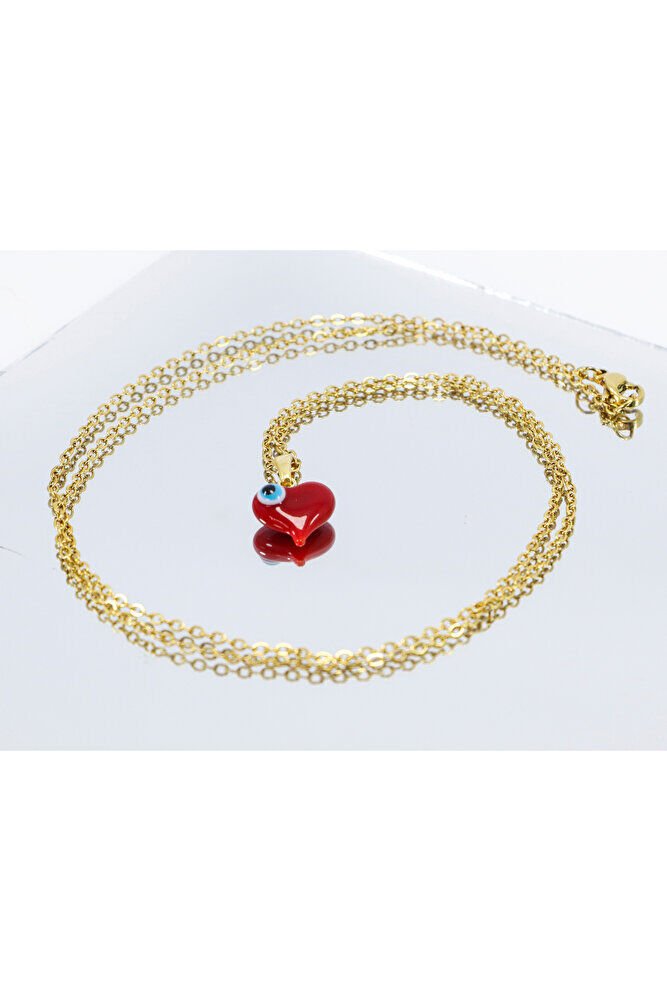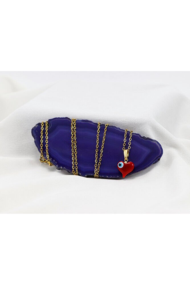 Kırmızı nazar boncuklu kalp camdır.; Zincir 60 cm dir ve paslanmaz çeliktir.;