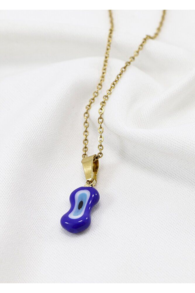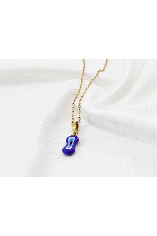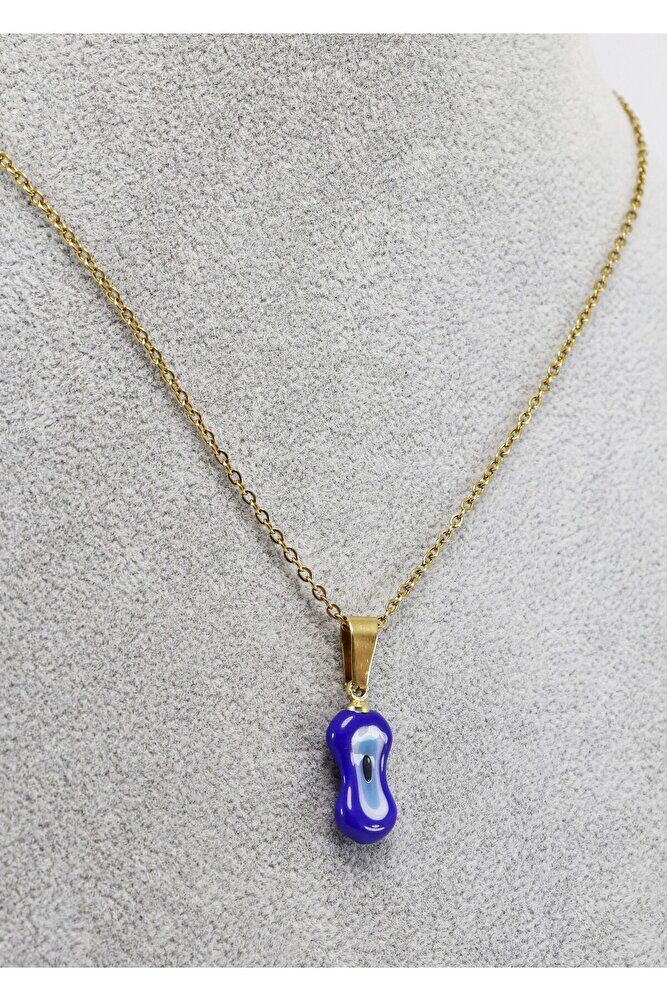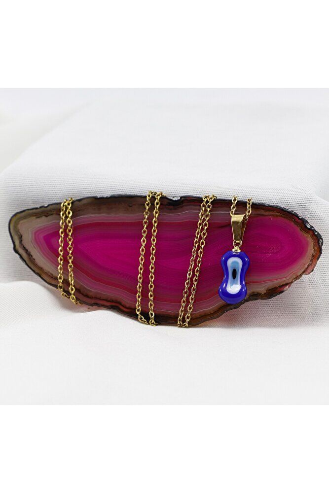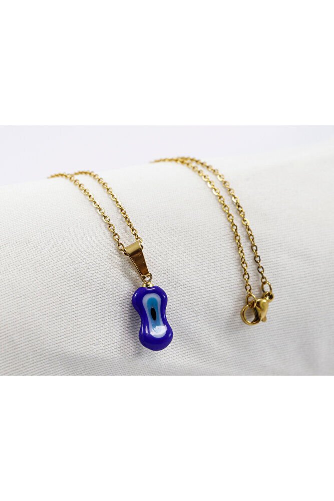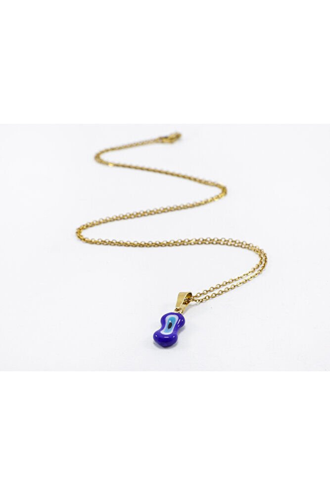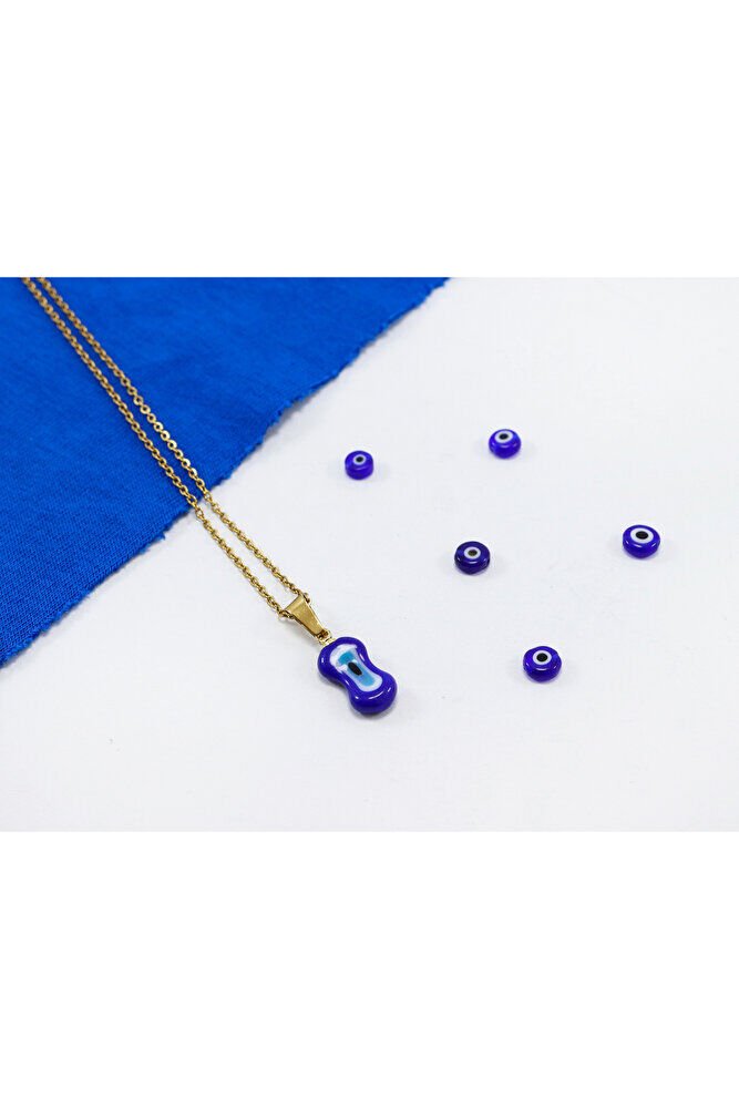 Lacivert nazar boncuk camdır .; Zincir 60 cm dir ve paslanmaz çeliktir.;