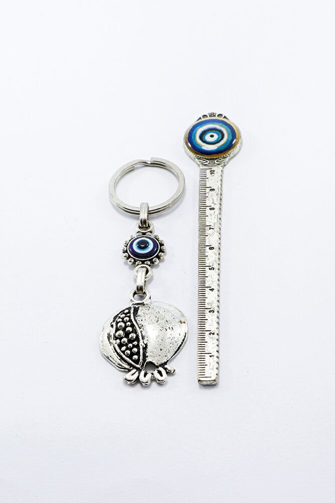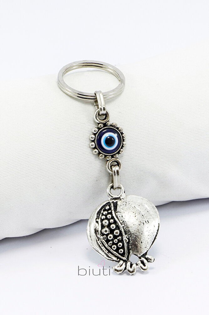 Nar ve Nazar Boncuklu Metal Anahtarlık, Hediyelik Küçük Çanta Süsü