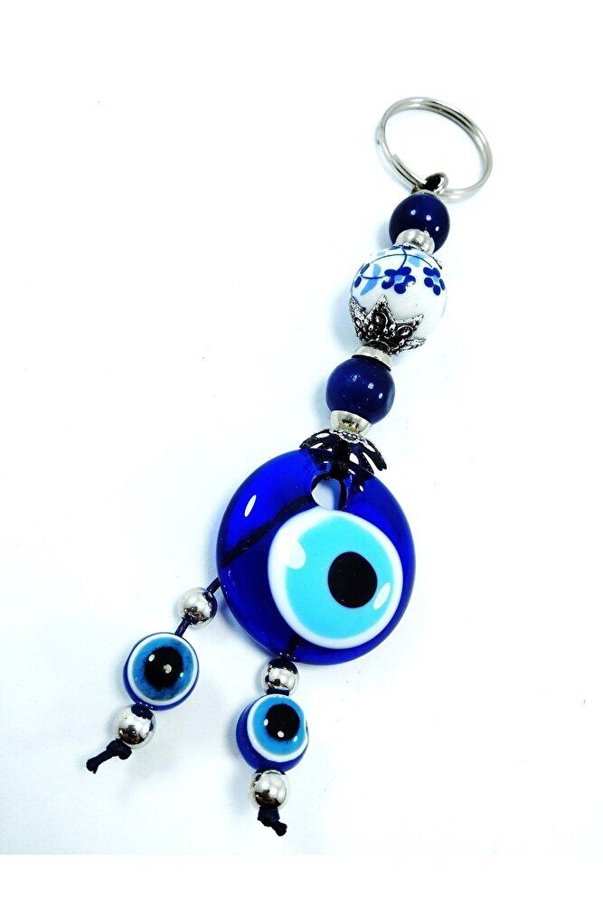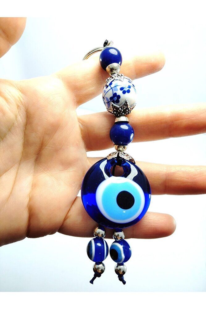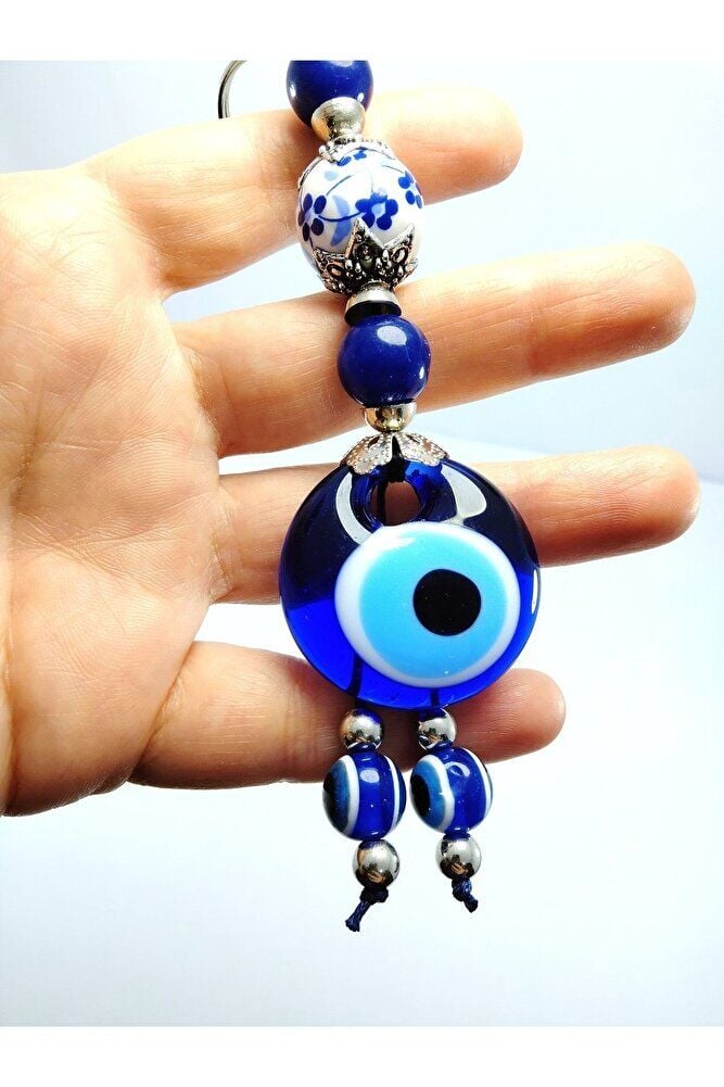 Nazar Boncuğu Anahtarlık / Araba Dikiz Ayna Süsü Seramik Boncuklu El Cam Yapımı Hediyelik