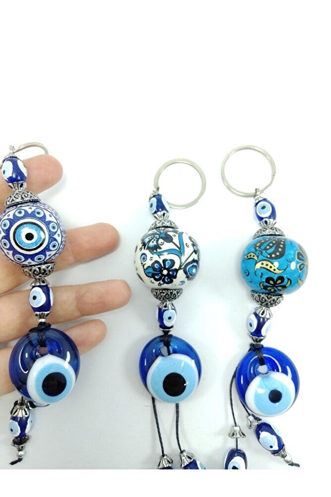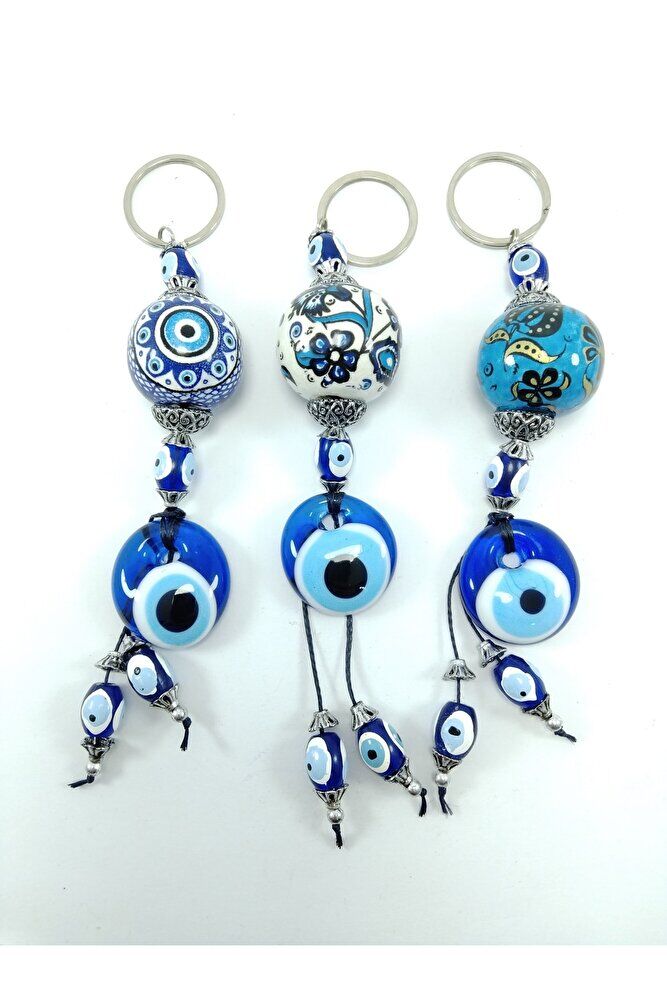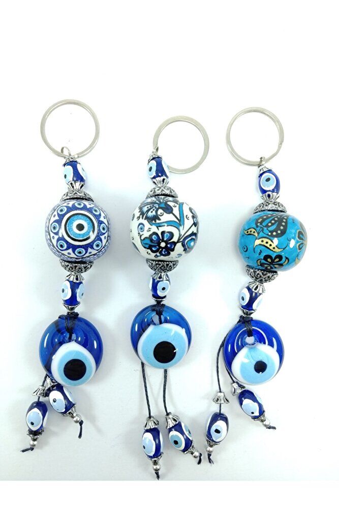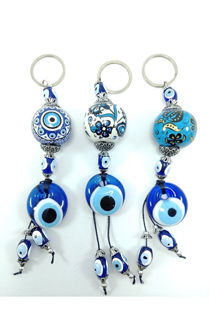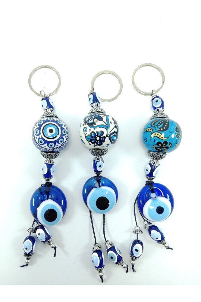 Nazar Boncuğu Anahtarlık El Yapımı Cam Aksesuar Seramik Hediyelik Eşya Üçlü Set