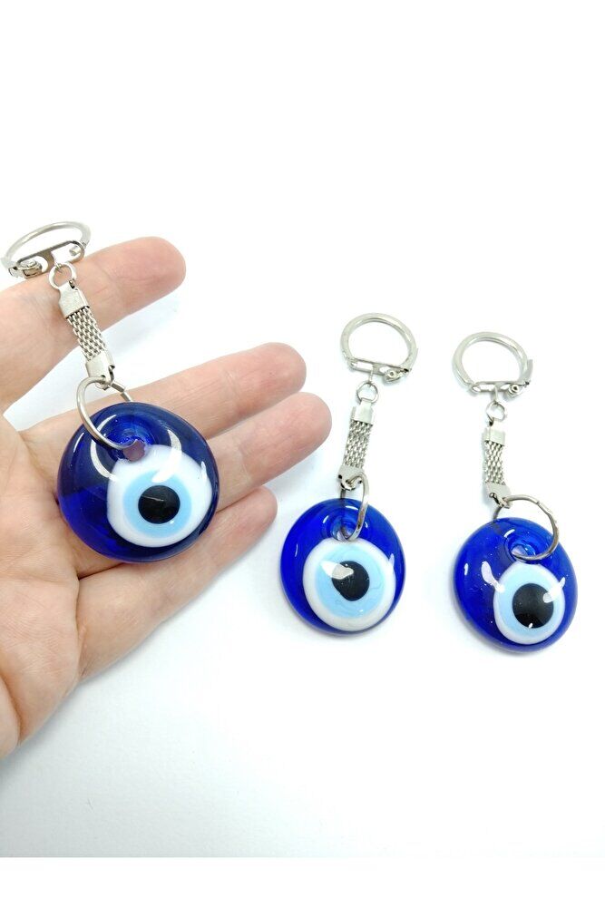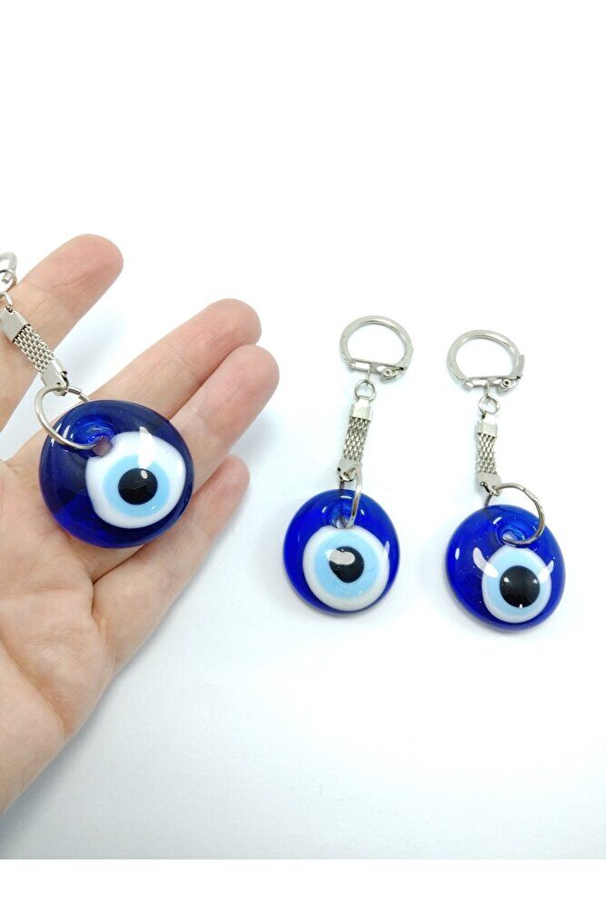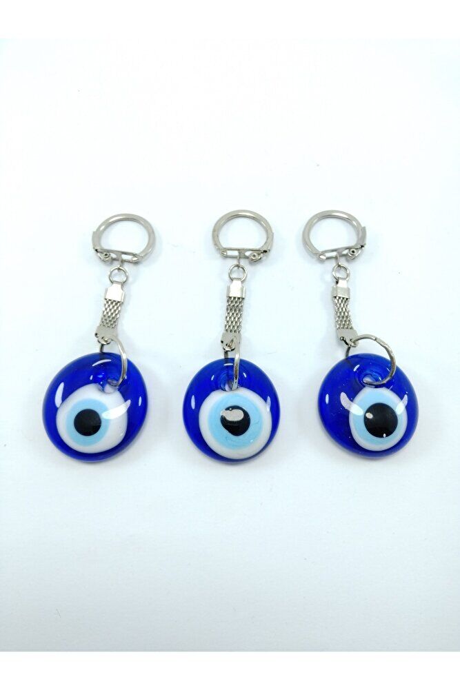 Nazar Boncuğu Anahtarlık El Yapımı Sade Cam Hediyelik Eşya Üçlü Set