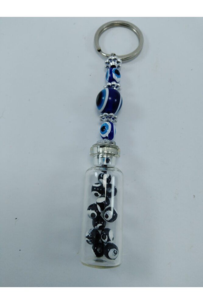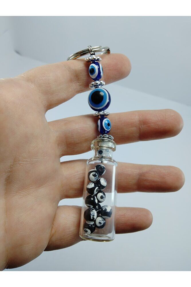 Nazar Boncuğu Anahtarlık El Yapımı Şişe Siyah Boncuklu Hediyelik Aksesuar