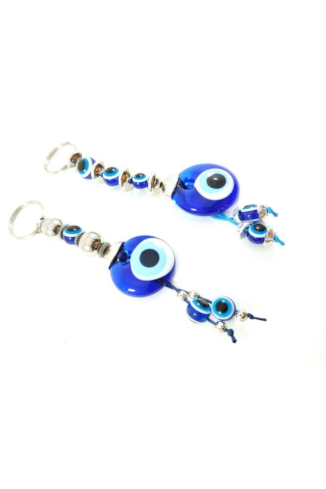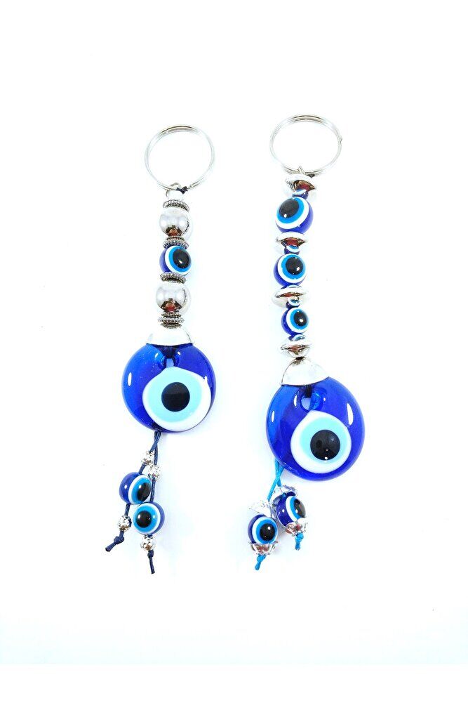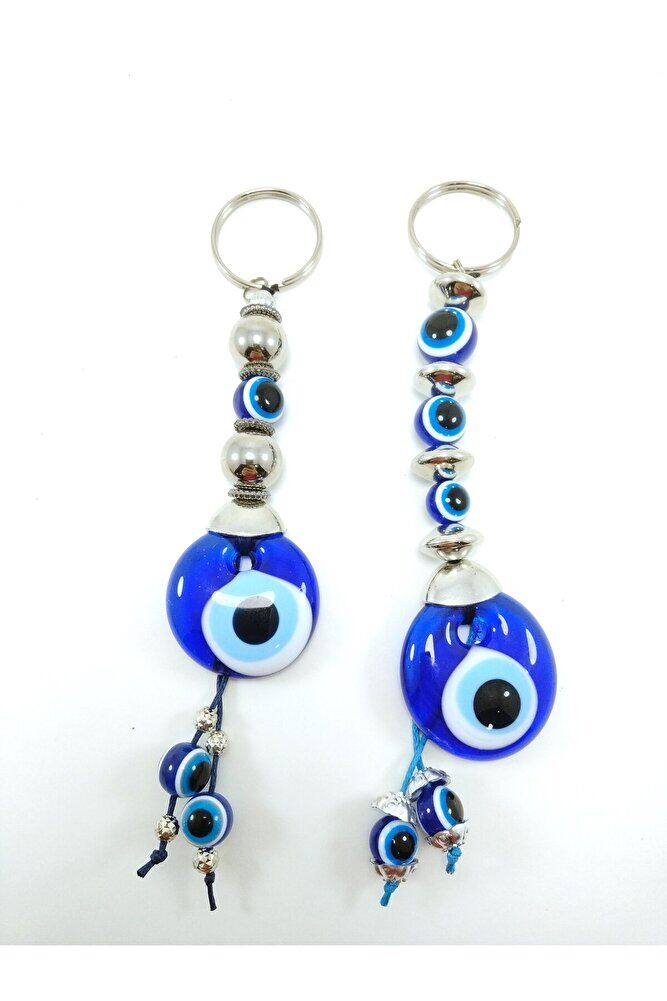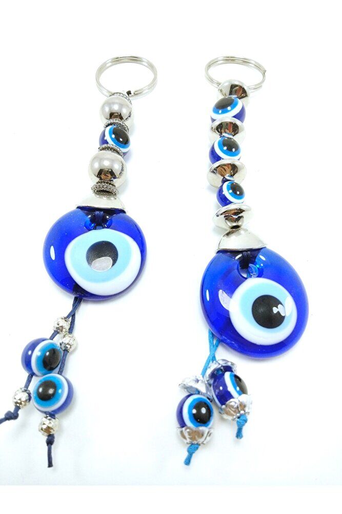 Nazar Boncuğu Anahtarlık Metalik Boncuklu El Yapımı Cam Hediyelik Aksesuar Ikili Set