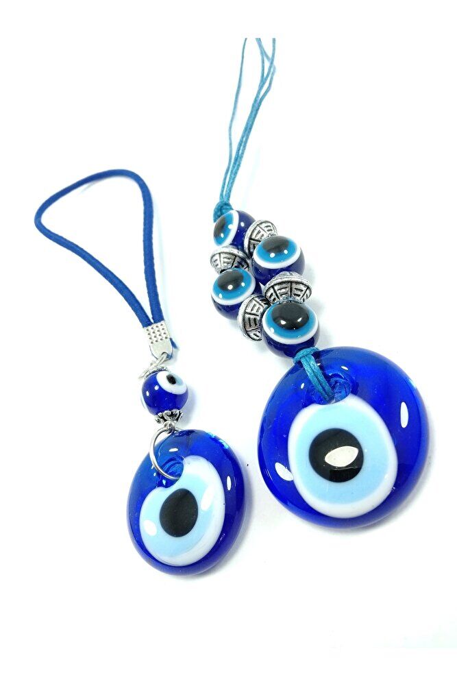 Nazar Boncuğu Araba Dikiz Ayna Süsü El Yapımı Cam Dekoratif Hediyelik Set