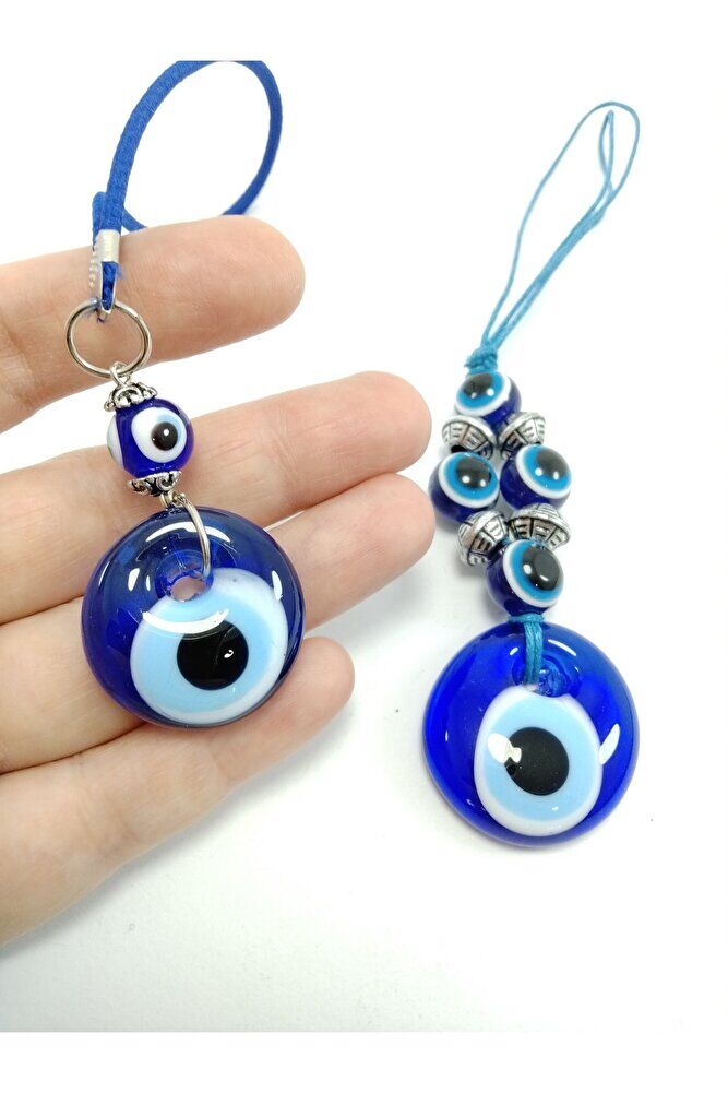 Ürün el yapımıdır. ; Cam boncuklar 3-3,5 cm 'dir. ; El yapımı olduğu için ufak farklılık ve düzensizlikler olasıdır. ; Bu el yapımı cam nazar boncukları ile kendinizi ve sevdiklerinizi negatif enerjiden koruyun. ; Türk kültüründe geleneksel olarak"nazar boncuğu" olarak bilinen bu güçlü sembolün kötülükleri savuşturduğuna ve iyi şans getirdiğine inanılır. ; Her cam boncuk yetenekli zanaatkarlar tarafından titizlikle işlenir ve bu her parçayı benzersiz kılar. ; Nazar boncuğunu, müşterilerimize duvar süsü, anahtarlık, araba aksesuarı, kapı süsü, magnet gibi farklı formatlarda sunuyoruz. ; Pozitif enerji getirmek ve nazardan korumak için evinize, arabanıza veya ofisinize asın. ; Nazar tılsımının dünyadaki çeşitli kültürlerde farklı isimleri vardır. ; Arapça'da "aynal-hasud" veya "haset gözü", Yunanca'da "mati" olarak bilinir. ; Adı ne olursa olsun, bu koruyucu nazar boncuğunun gücüne olan inanç evrenseldir.;