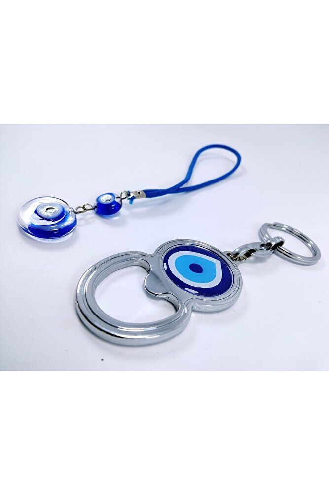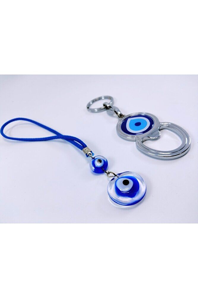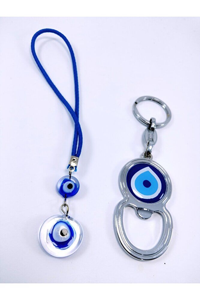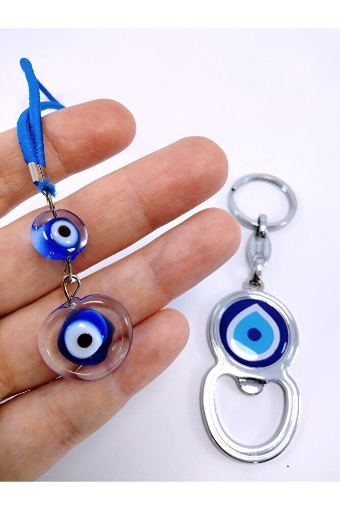 Nazar Boncuğu Araba Dikiz Ayna Süsü Şişe Açacağı Anahtarlık El Yapımı Cam Hediyelik Set