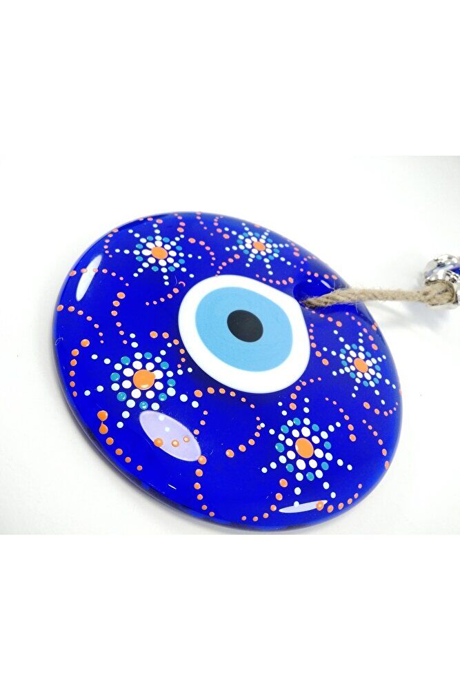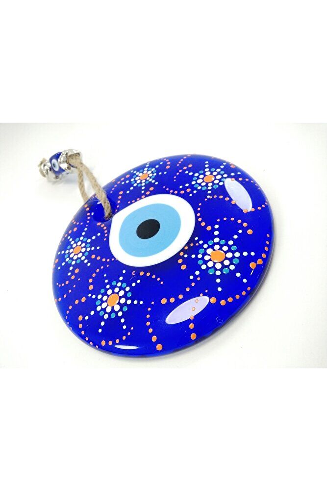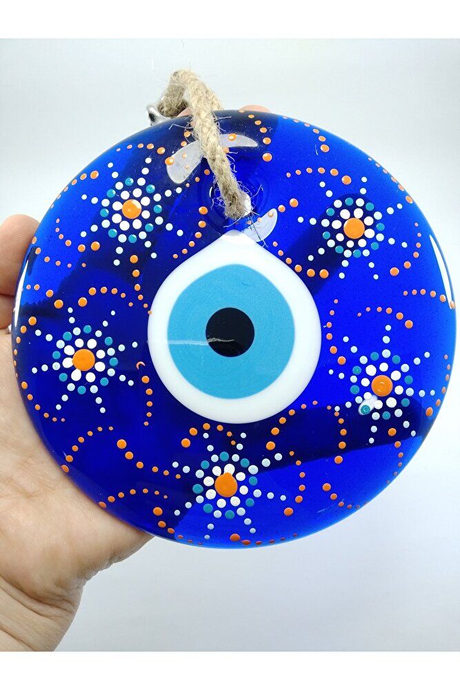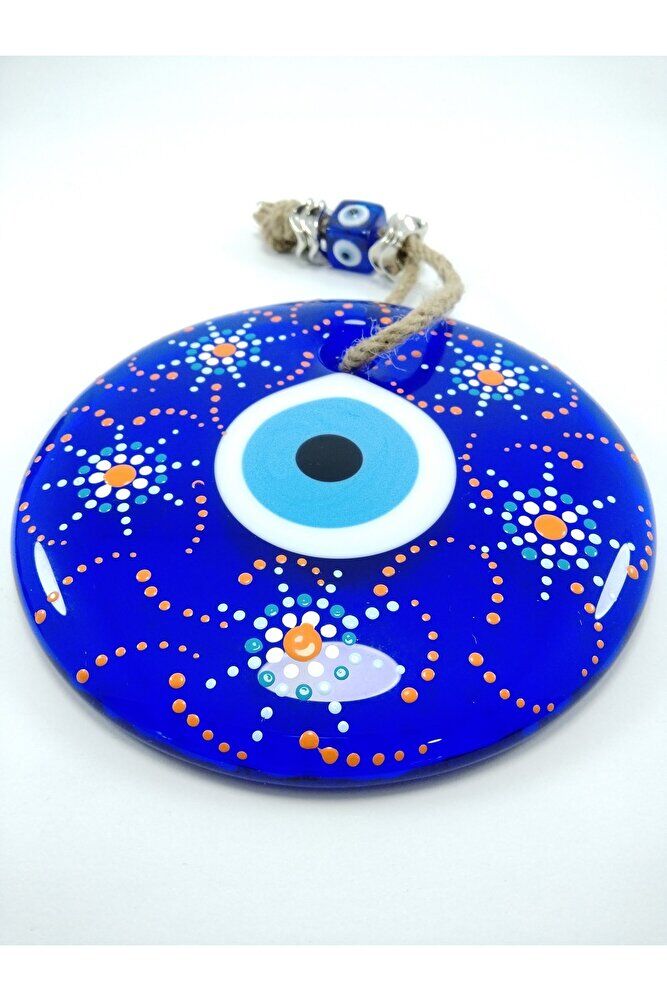 Ürün el yapımıdır. ; Cam boncuk 13 cm çapındadır. ; El yapımı olduğu için ufak düzensizlikler olasıdır. ; Bu el yapımı cam nazar boncukları ile kendinizi ve sevdiklerinizi negatif enerjiden koruyun. ; Türk kültüründe geleneksel olarak"nazar boncuğu" olarak bilinen bu güçlü sembolün kötülükleri savuşturduğuna ve iyi şans getirdiğine inanılır. ; Her cam boncuk yetenekli zanaatkarlar tarafından titizlikle işlenir ve bu her parçayı benzersiz kılar. ; Nazar boncuğunu, müşterilerimize duvar süsü, anahtarlık, araba aksesuarı, kapı süsü, magnet gibi farklı formatlarda sunuyoruz. ; Pozitif enerji getirmek ve nazardan korumak için evinize, arabanıza veya ofisinize asın. ; Nazar tılsımının dünyadaki çeşitli kültürlerde farklı isimleri vardır. ; Arapça'da "aynal-hasud" veya "haset gözü", Yunanca'da "mati"veya "????" olarak bilinir. ; Adı ne olursa olsun, bu koruyucu nazar boncuğunun gücüne olan inanç evrenseldir.;
