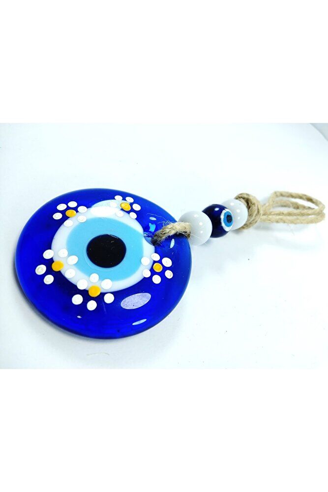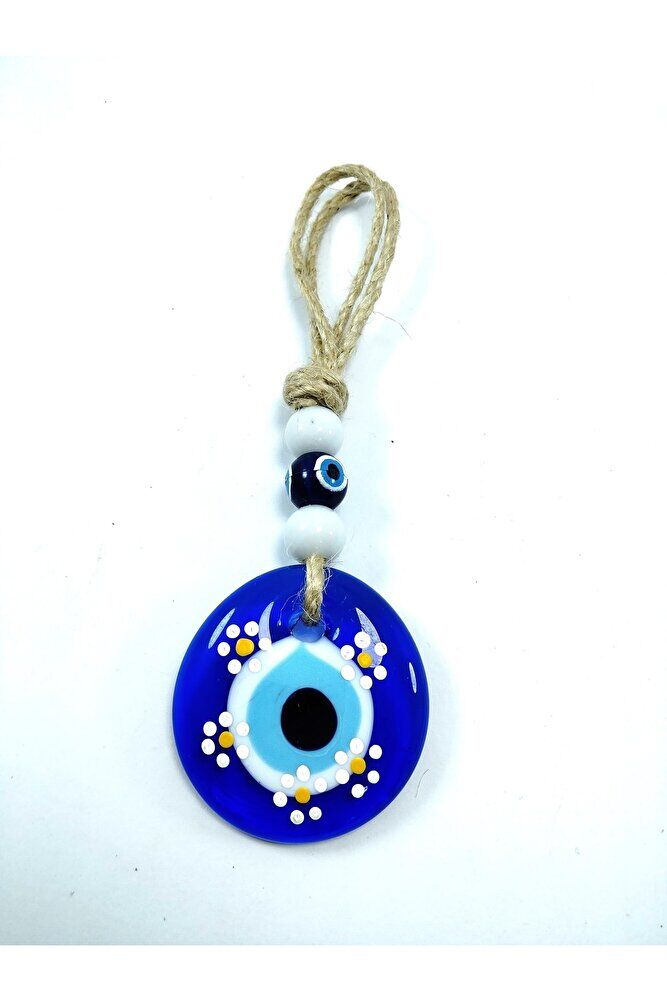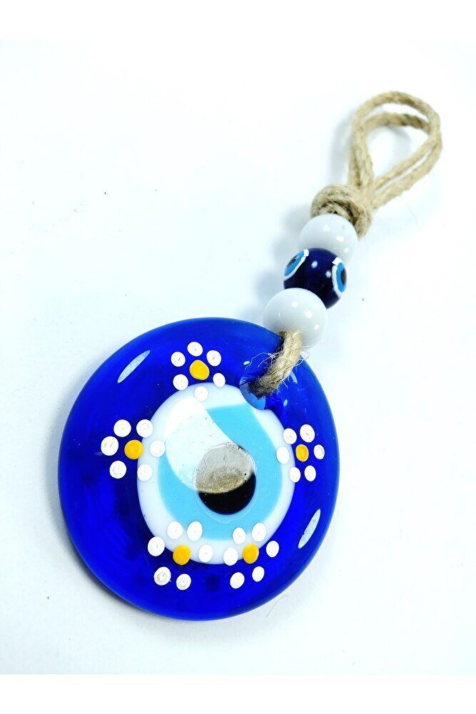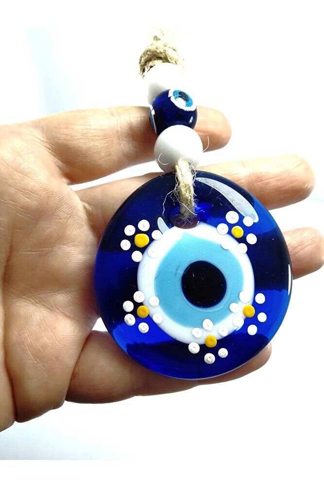 Ürün el yapımıdır. ; Cam boncuk 5 cm boyutundadır. ; El yapımı olduğu için ufak farklılık ve düzensizlikler olasıdır. ; Bu el yapımı cam nazar boncuğu ile kendinizi ve sevdiklerinizi negatif enerjiden koruyun. ; Türk kültüründe geleneksel olarak "nazar boncuğu" olarak bilinen bu güçlü sembolün kötülükleri savuşturduğuna ve iyi şans getirdiğine inanılır. ; Her cam boncuk yetenekli zanaatkarlar tarafından titizlikle işlenir ve bu her parçayı benzersiz kılar. ; Nazar boncuğunu, müşterilerimize duvar süsü, anahtarlık, araba aksesuarı, kapı süsü, magnet gibi farklı formatlarda sunuyoruz. ; Pozitif enerji getirmek ve nazardan korumak için evinize, arabanıza veya ofisinize asın. ; Nazar tılsımının dünyadaki çeşitli kültürlerde farklı isimleri vardır. ; Arapça'da "ayn al-hasud" veya "haset gözü", Yunanca'da "mati" veya "????" olarak bilinir. ; Adı ne olursa olsun, bu koruyucu nazar boncuğunun gücüne olan inanç evrenseldir. ; El yapımı cam nazar boncuğunuzu bugün sipariş edin ve hayatınıza bir koruma ve pozitiflik dokunuşu getirin.;