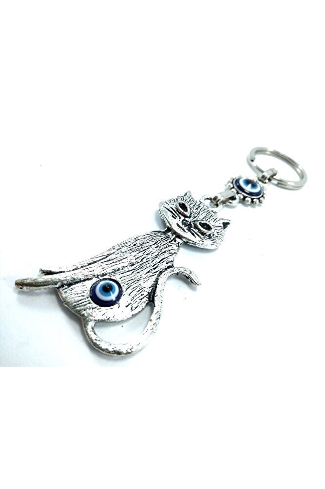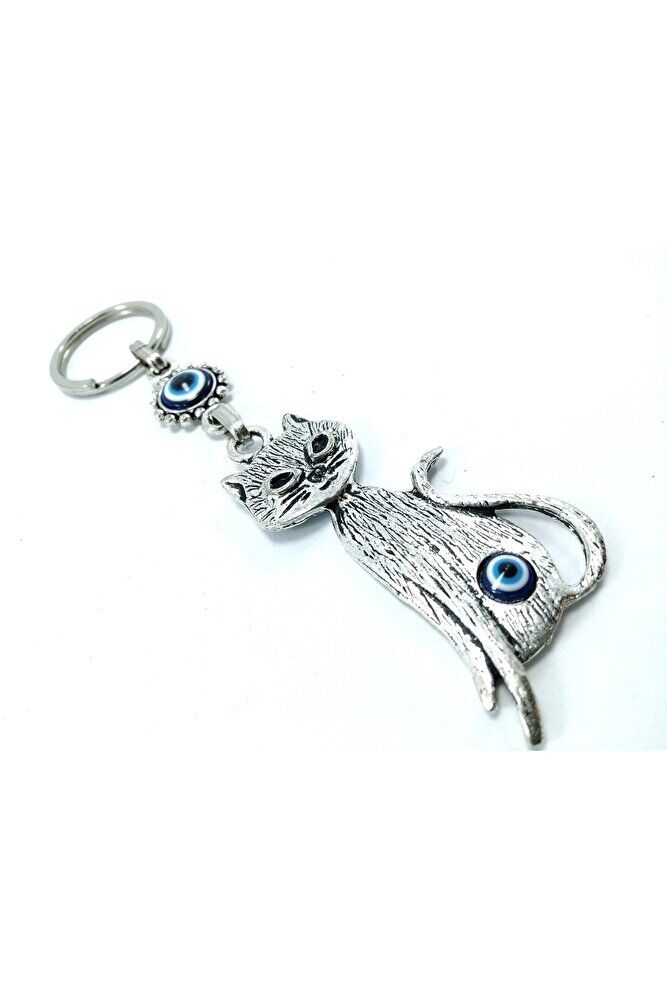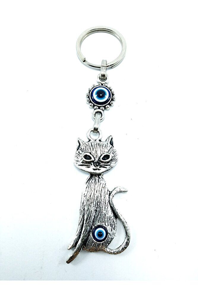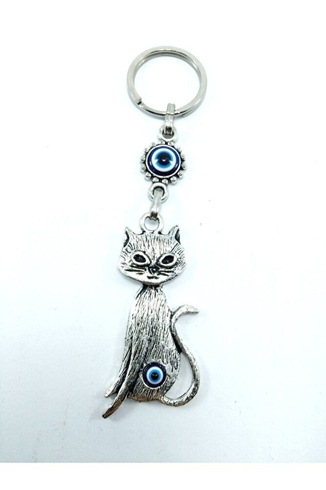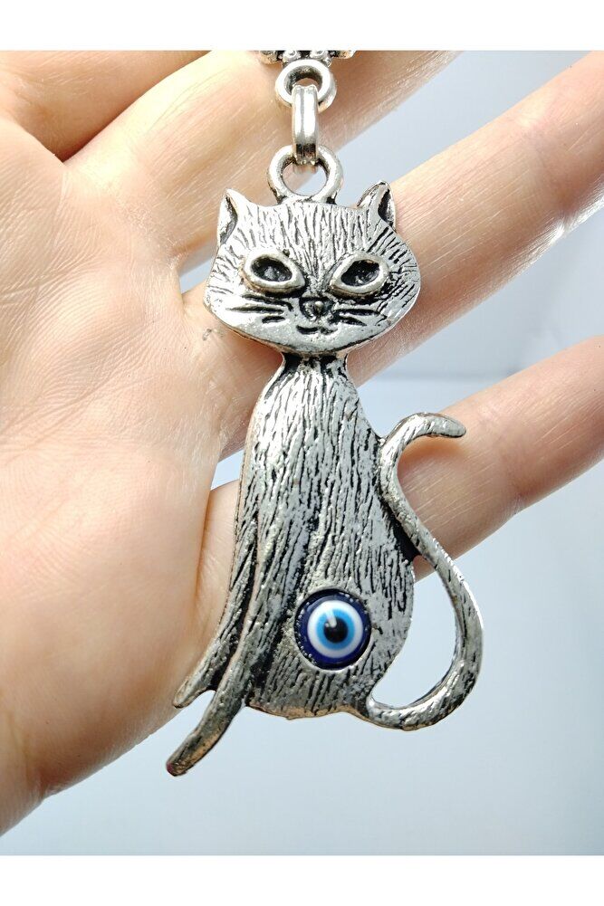 Nazar Boncuğu Metal Kedi Anahtarlık/dikiz Ayna Süsü Hediyelik Eşya