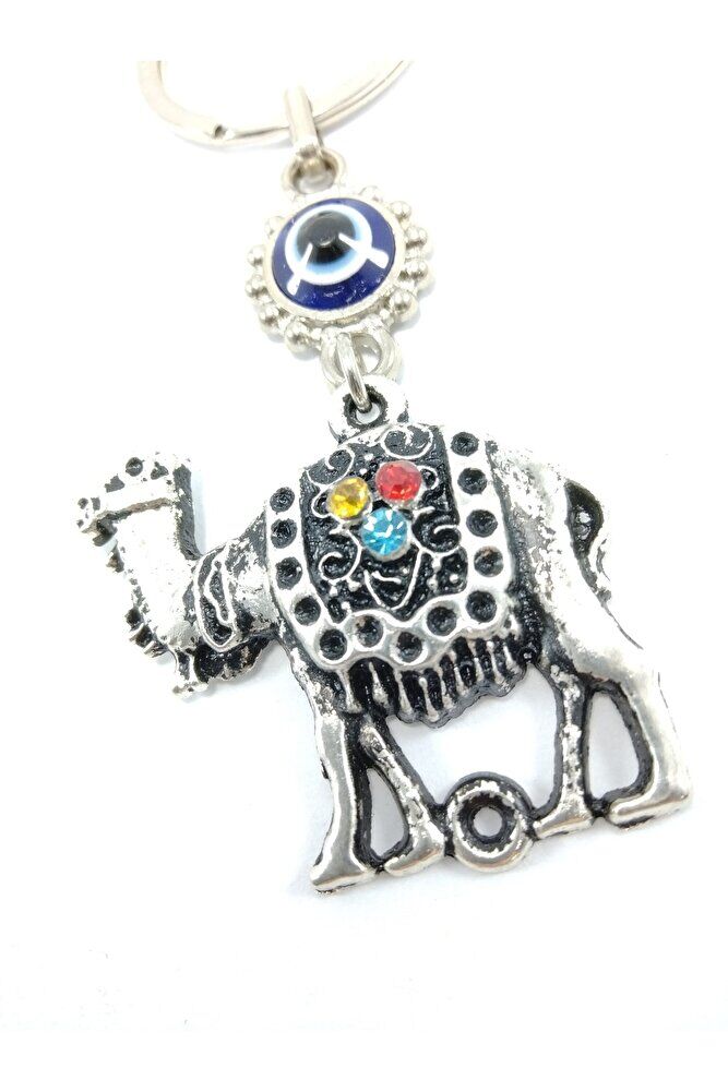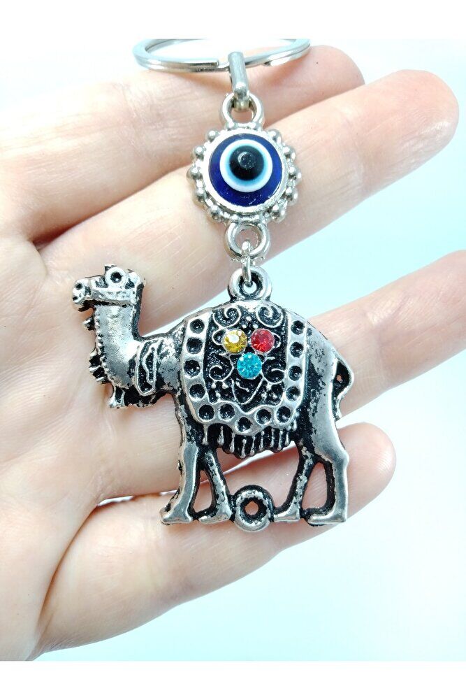 Nazar Boncuğu Metal Taşlı Deve Anahtarlık / Araba Dikiz Ayna Süsü Hediyelik Aksesuar
