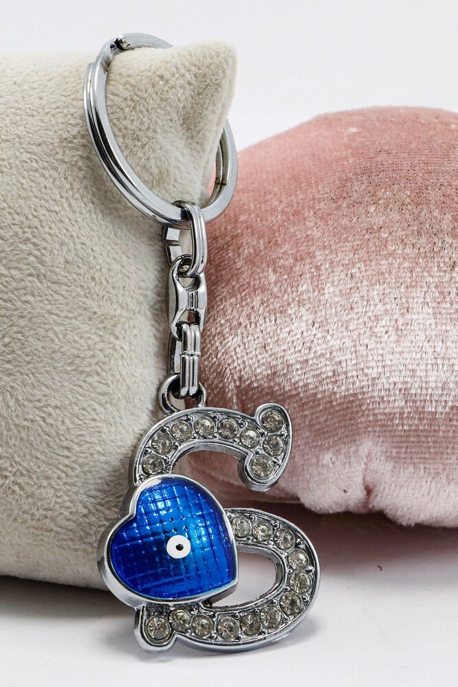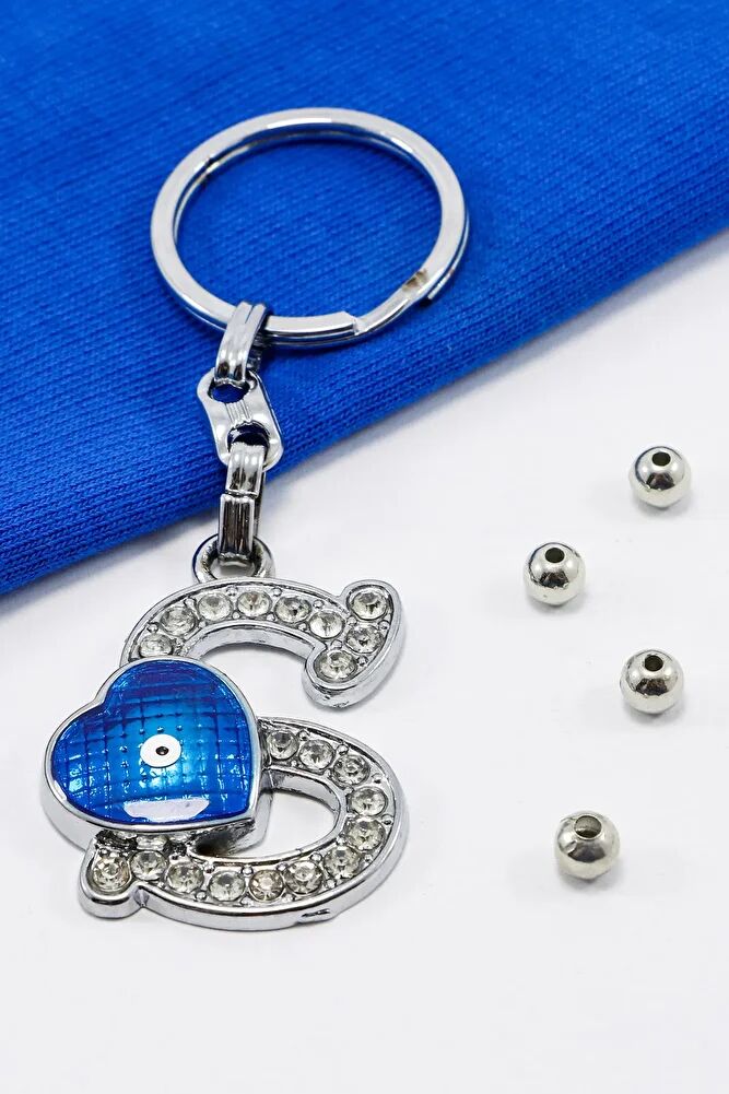 Nazar Boncuğu S Harfi Anahtarlık / Araba Dikiz Ayna Süsü Metal Hediyelik Aksesuar