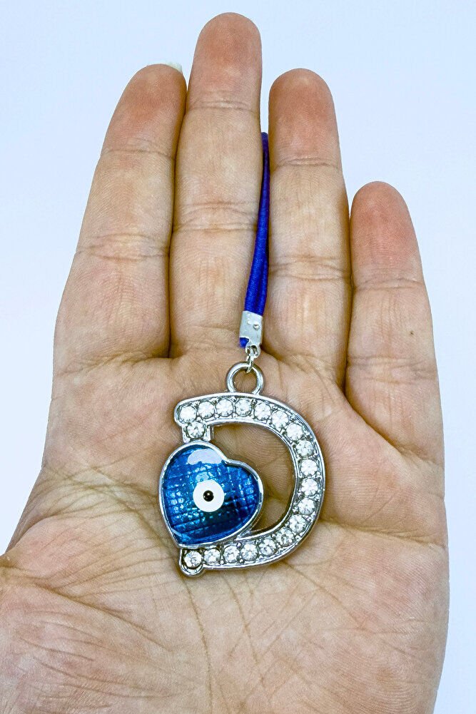 Nazar Boncuklu D Harfi Araba Dikiz Ayna Süsü Metal Hediyelik Aksesuar