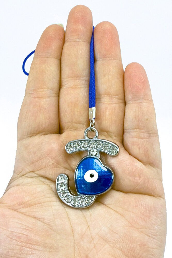 Nazar Boncuklu J Harfi Araba Dikiz Ayna Süsü Metal Hediyelik Aksesuar