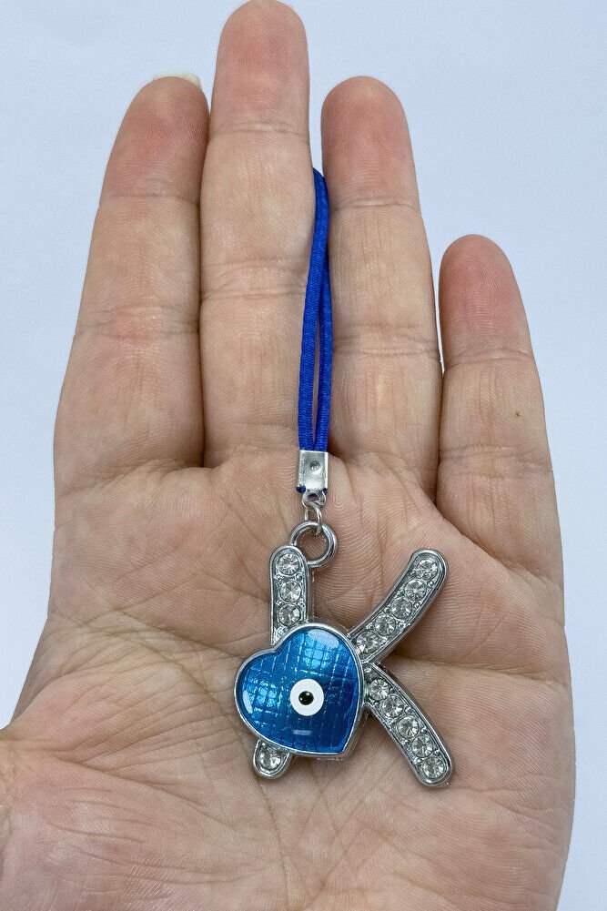 Nazar Boncuklu K Harfi Araba Dikiz Ayna Süsü Metal Hediyelik Aksesuar
