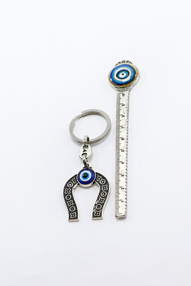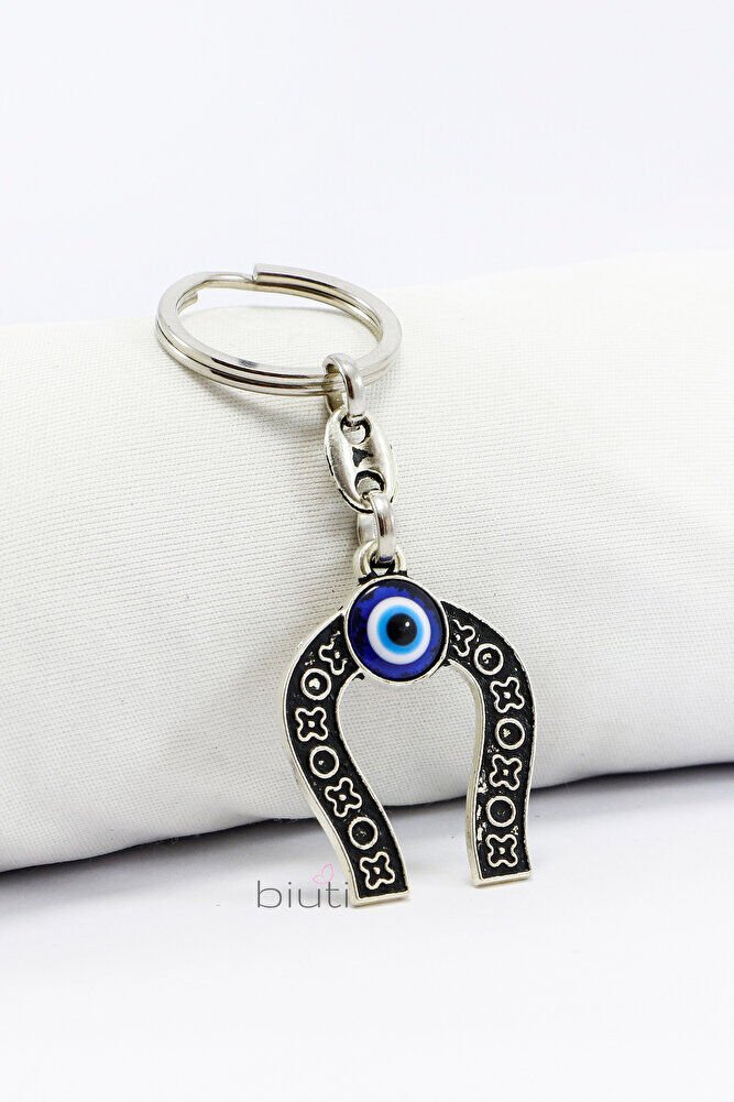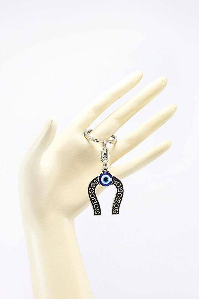Nazar Boncuklu Metal Nal Anahtarlık, Hediyelik Küçük Çanta Süsü