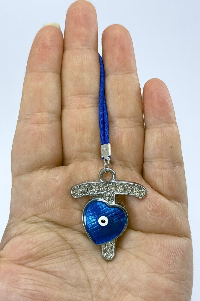 Nazar Boncuklu T Harfi Araba Dikiz Ayna Süsü Metal Hediyelik Aksesuar