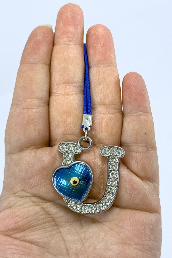 Nazar Boncuklu U Harfi Araba Dikiz Ayna Süsü Metal Hediyelik Aksesuar
